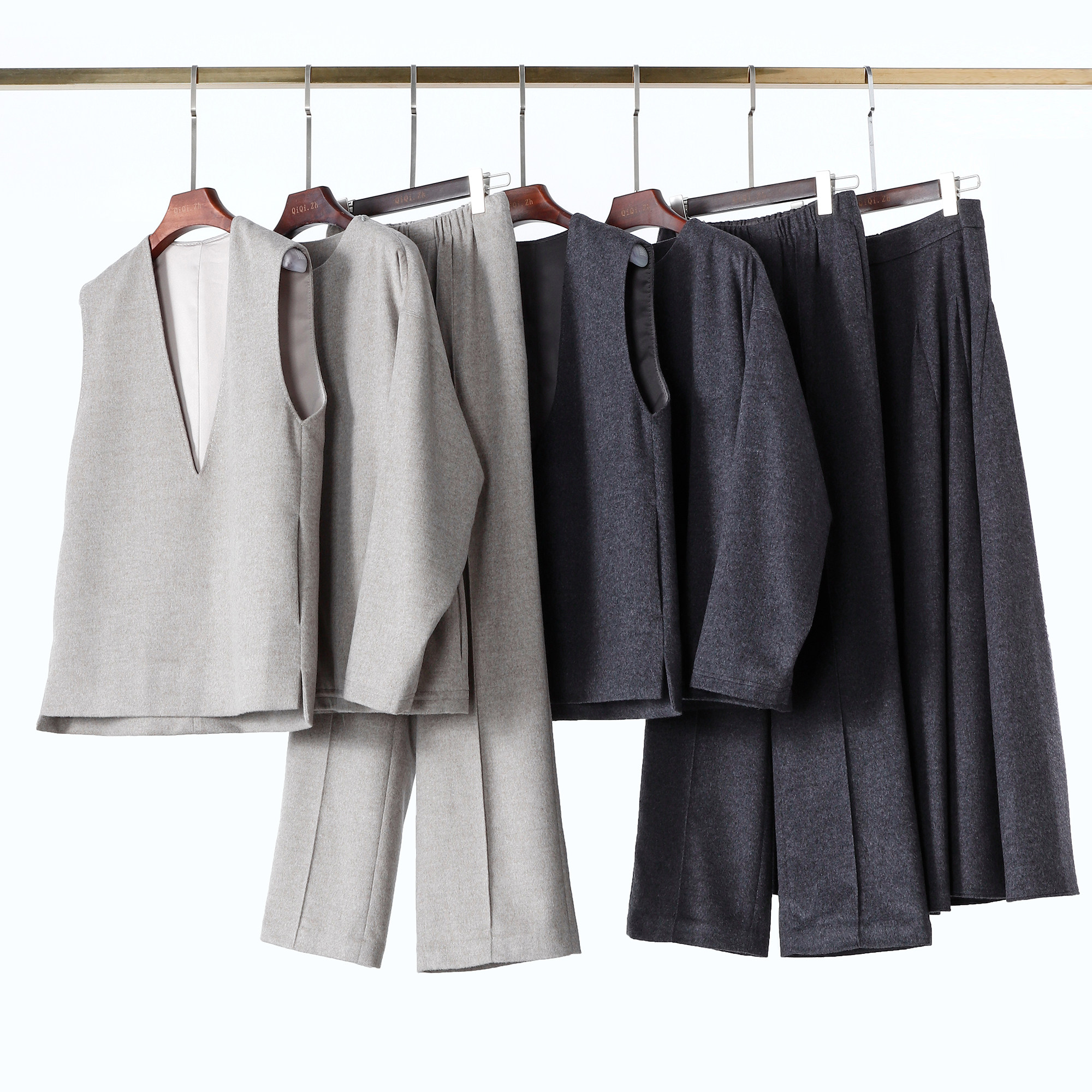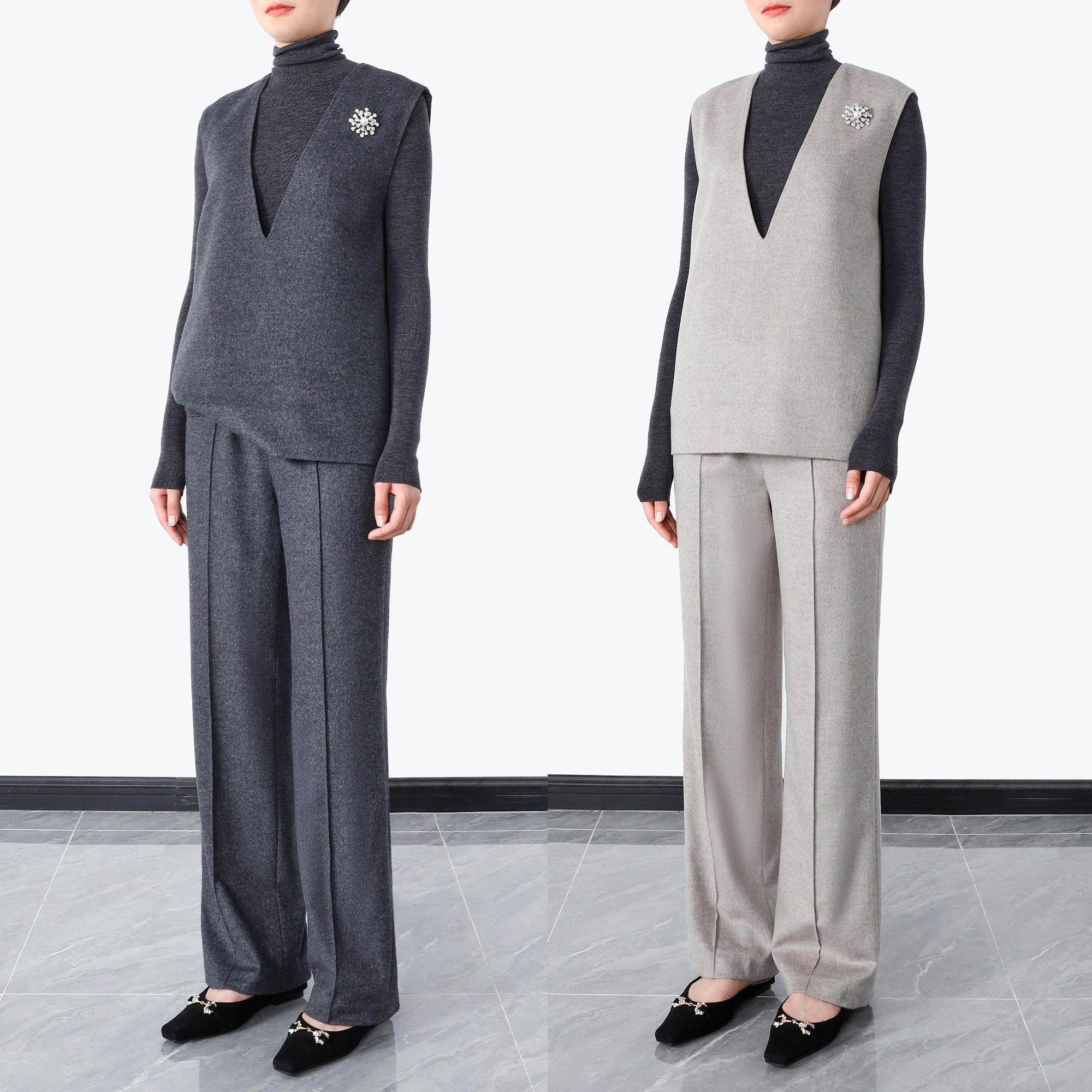 定格松弛 v领马甲宽松卫衣 松紧腰休闲长裤 真丝羊毛毛呢休闲套装由