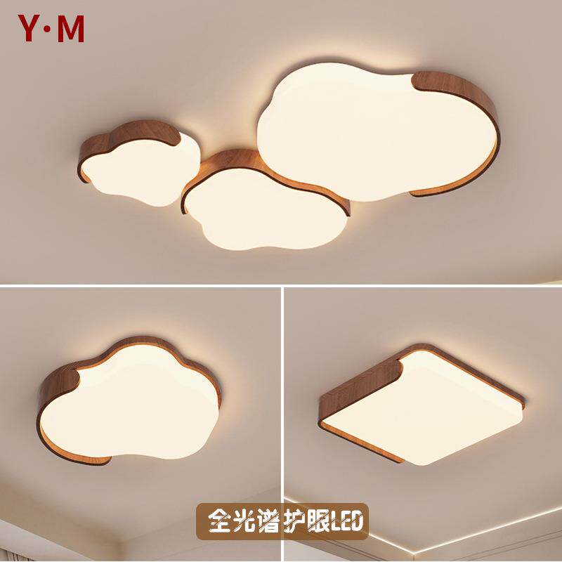 中古奶油风客厅灯云朵吸顶灯诧寂风卧室灯复古胡桃色大厅主灯3911