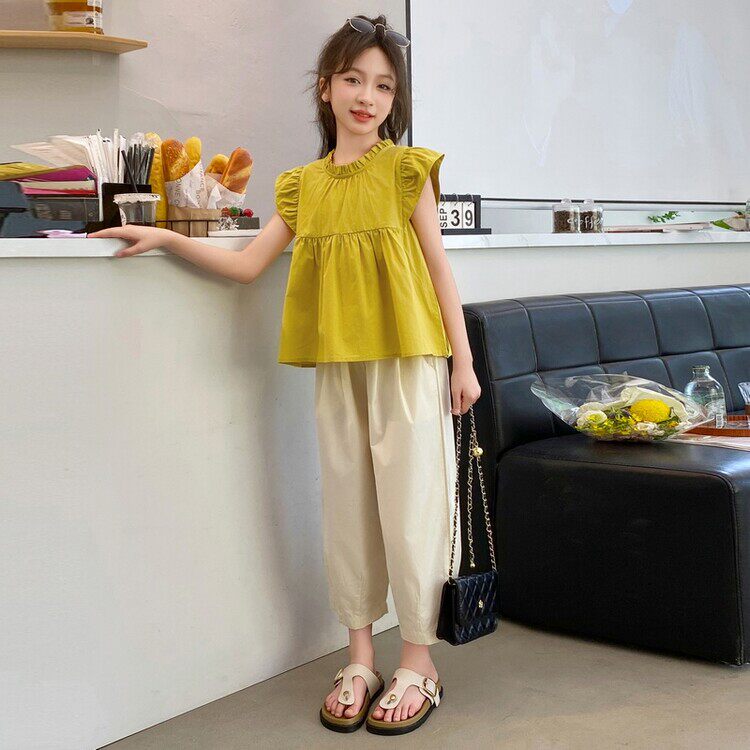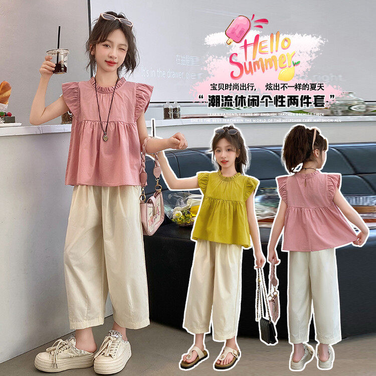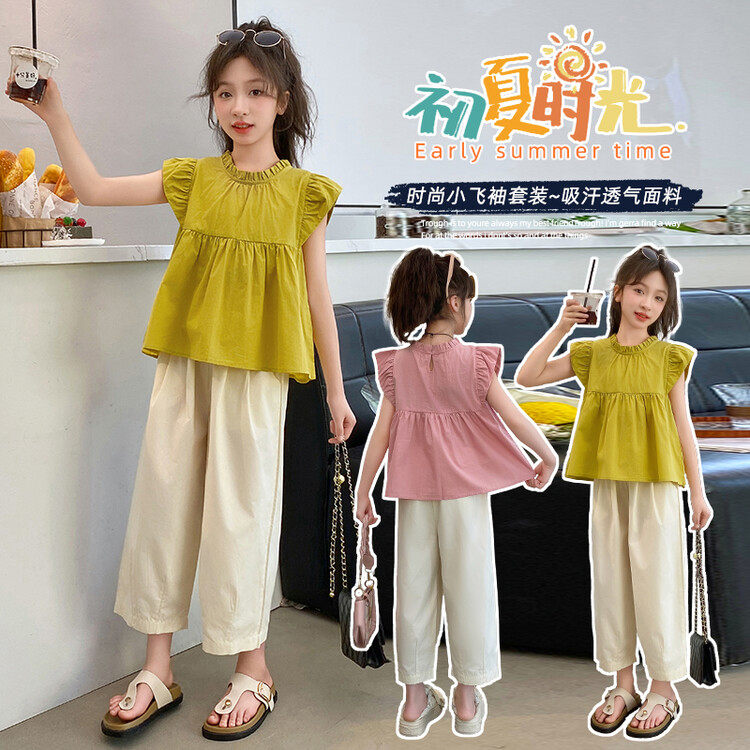 大童洋气时髦套装 女童夏季 两件套薄款 娃娃衫 韩版 飞袖