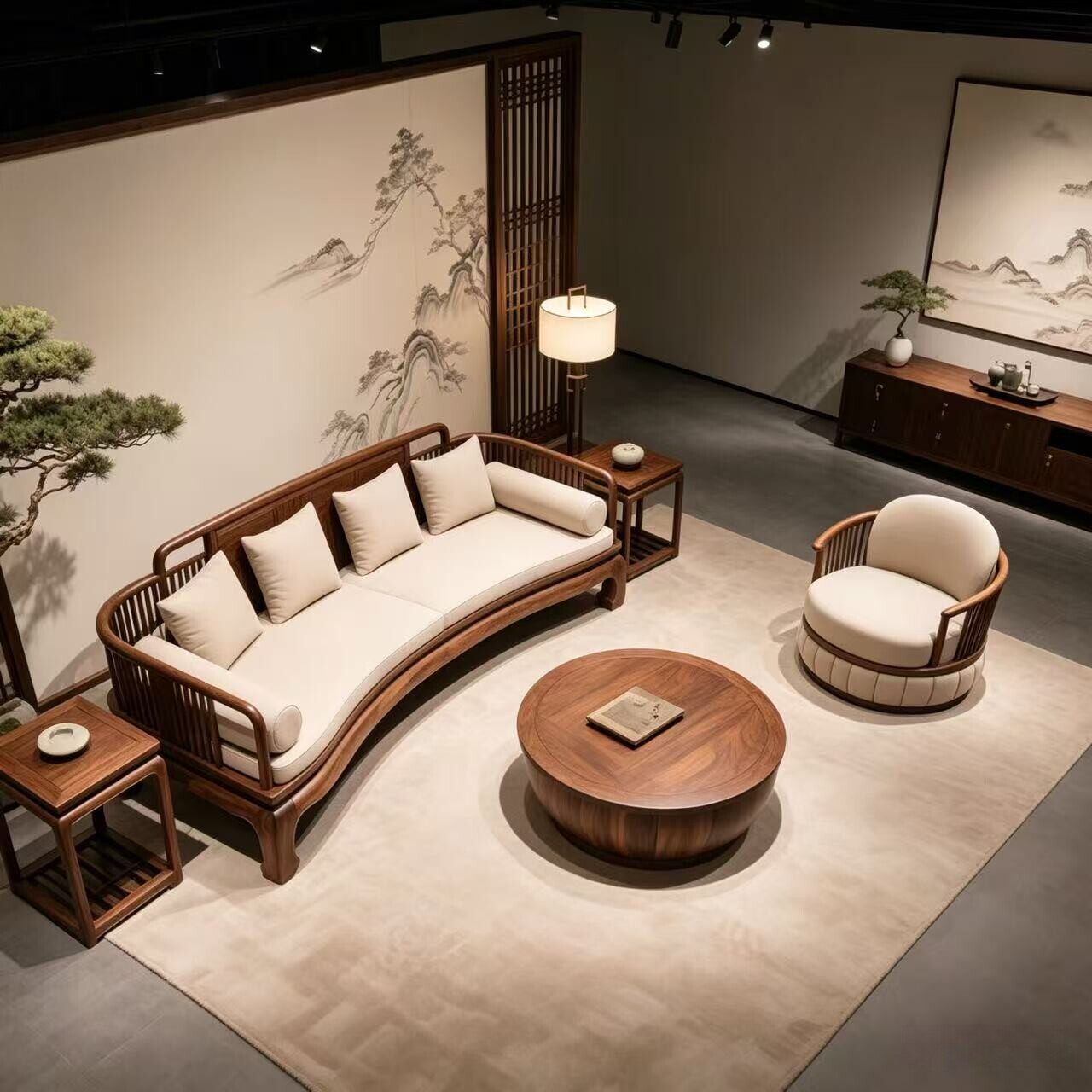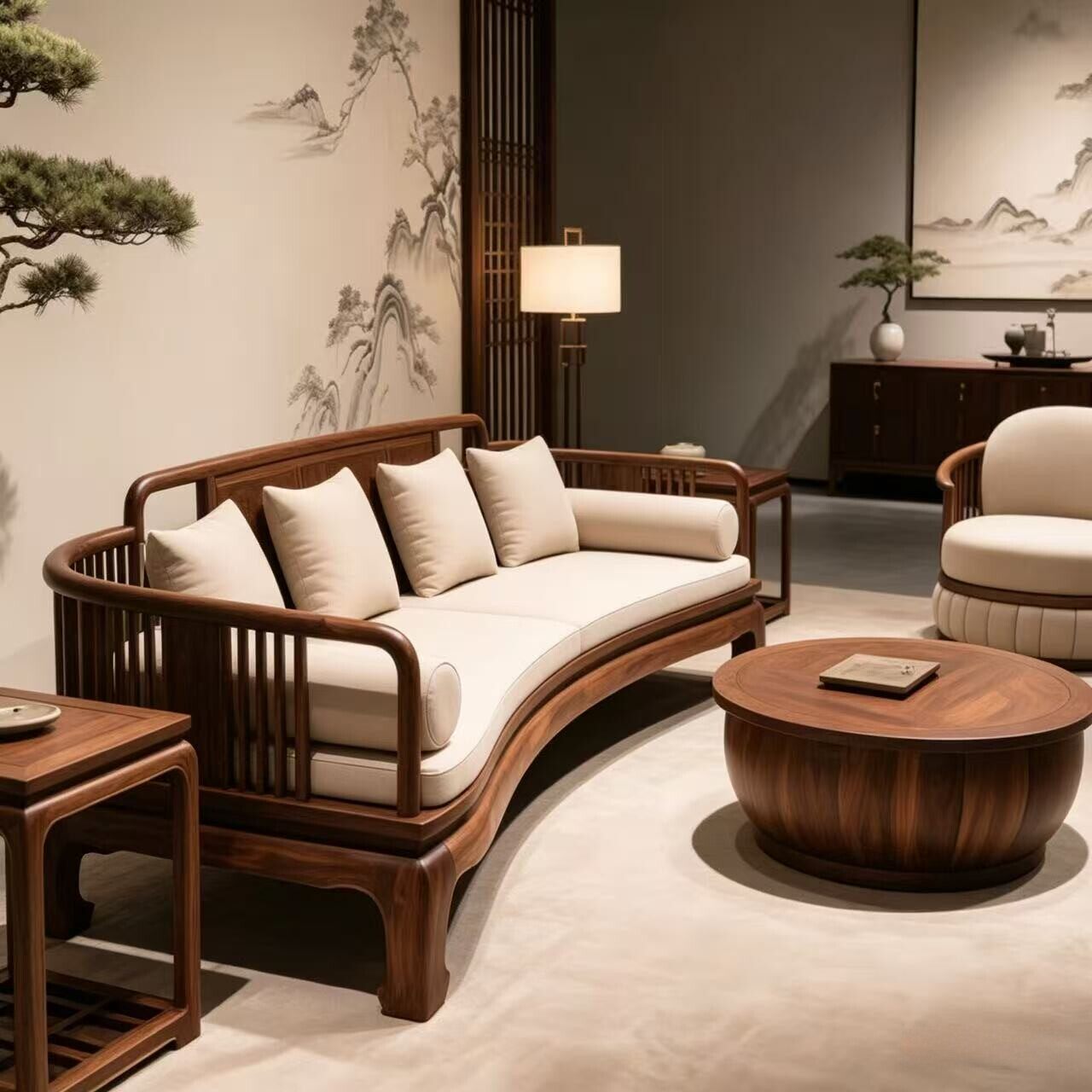 宋式 实木沙发 美学北美黑胡桃木沙发组合现代简约高品质家具新中式由