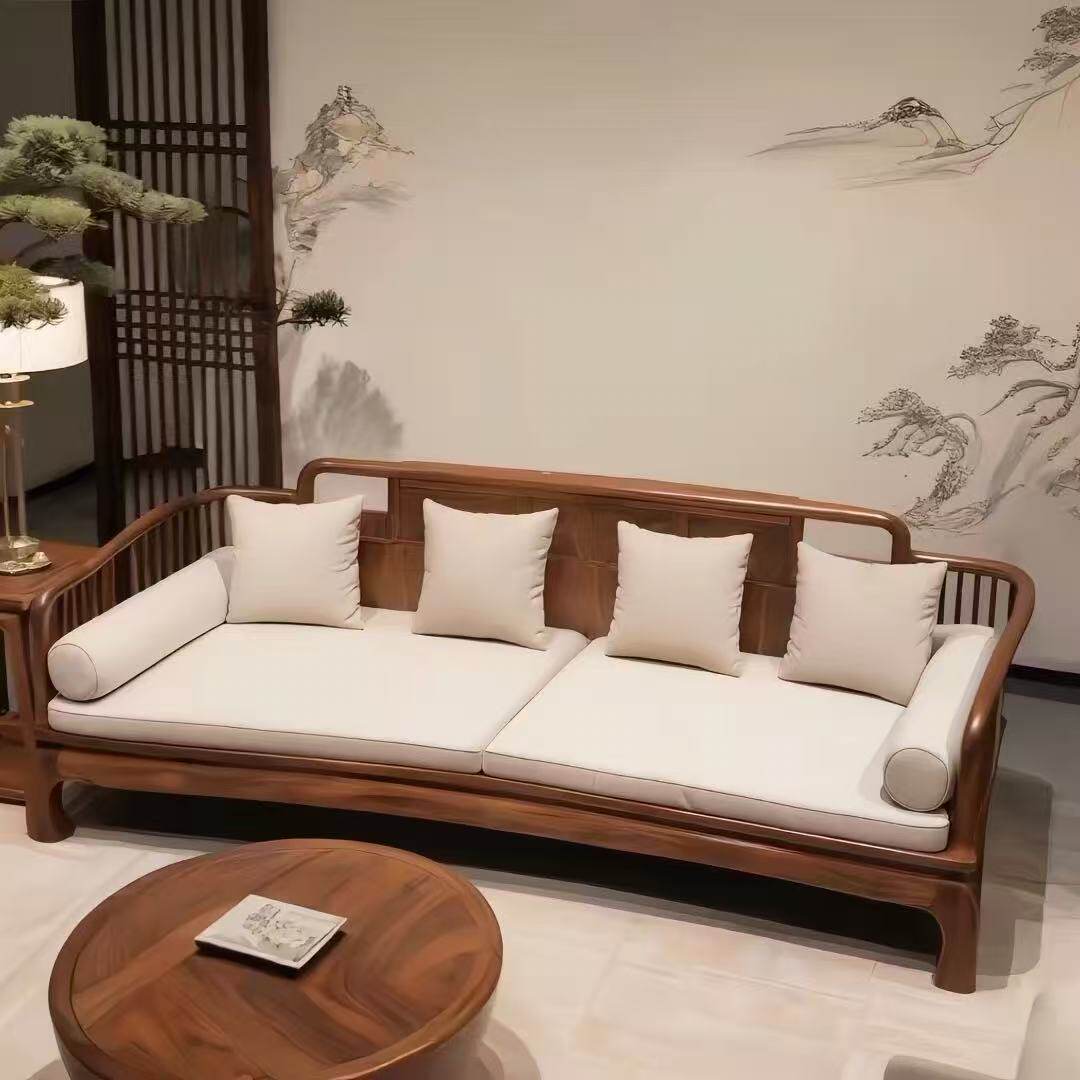 胡桃木国风雕花实木沙发现代简约家用冬夏两用可储物家具 新中式