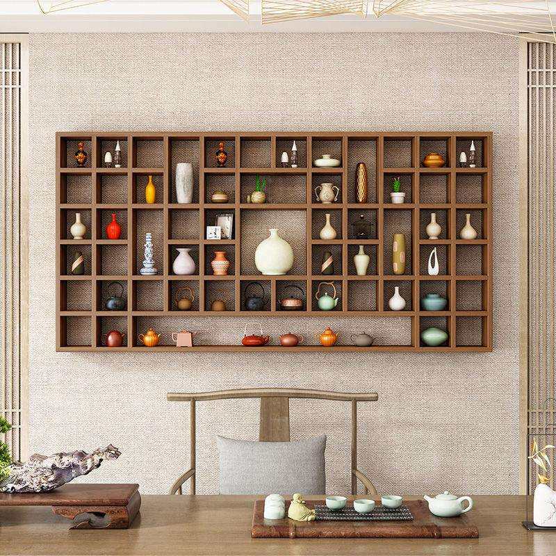 为您提供商品隔板壁挂造型置物架茶壶展示架实木格子架杯子架墙上博古架异形木的详细介绍,