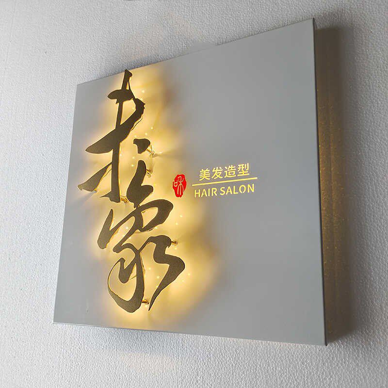 不锈钢悬浮背发光招牌铁艺金属广告牌公司店面茶室民宿工作室门牌