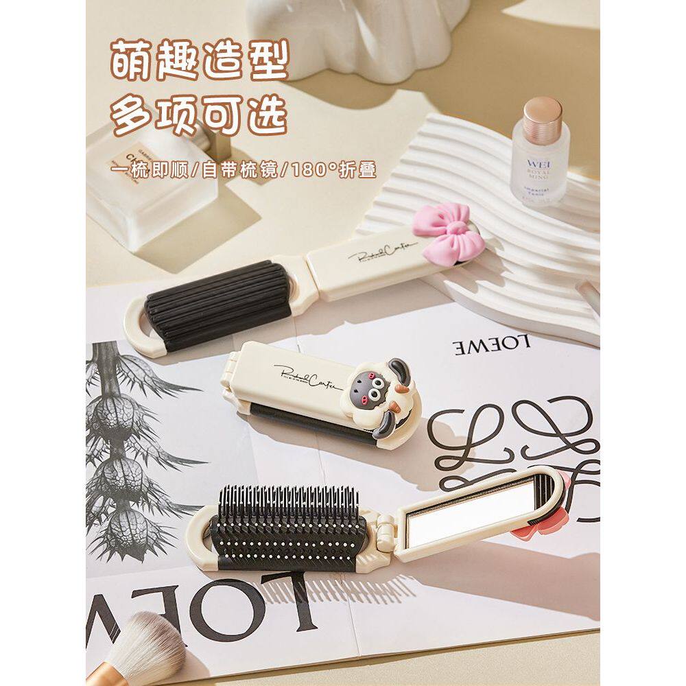 蝴蝶结便携随身迷你折叠气囊刘海专用折叠带镜子一体小梳子 新款由