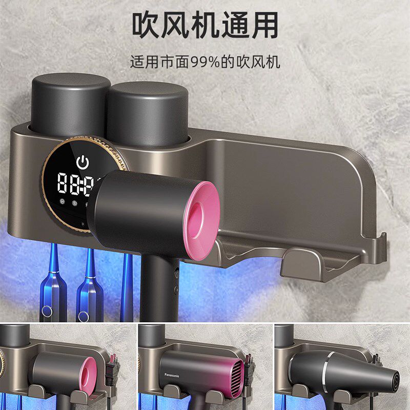 卫生间 智能电动牙刷消毒烘干器杀菌漱口杯挤牙膏一体置物架壁挂式
