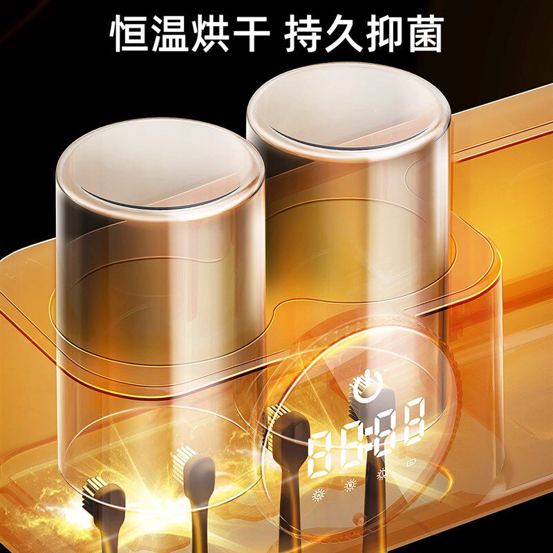 智能牙刷紫外线消毒器漱口杯置物架电动杀菌烘干仓壁挂一体机双人