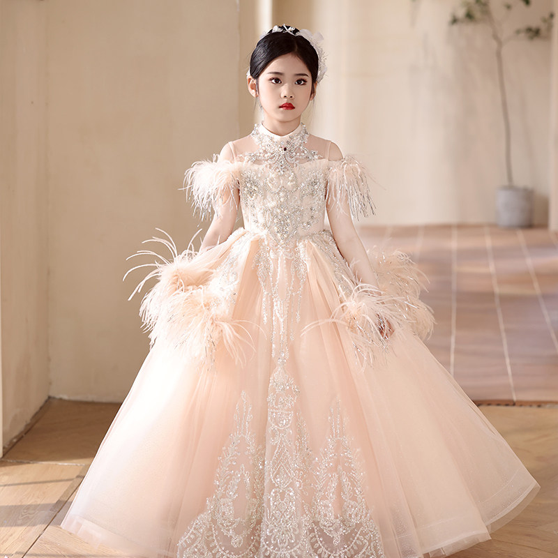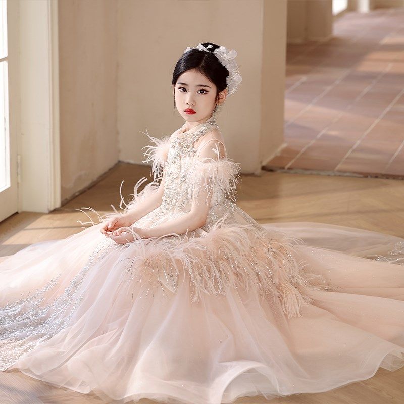 儿童礼服公主裙粉色洋气模特走秀钢琴演出生日小主持高端女童礼服