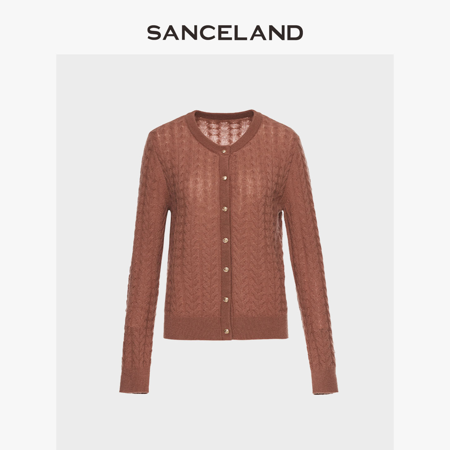 SANCELAND三石一澜春夏圆领羊绒针织开衫 SI35501023 外套麻花织衫由