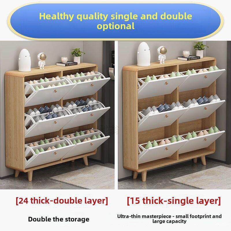 家用超窄门厅柜门口大容量真实木鞋 橱 柜简约新款 全实木超薄翻斗鞋