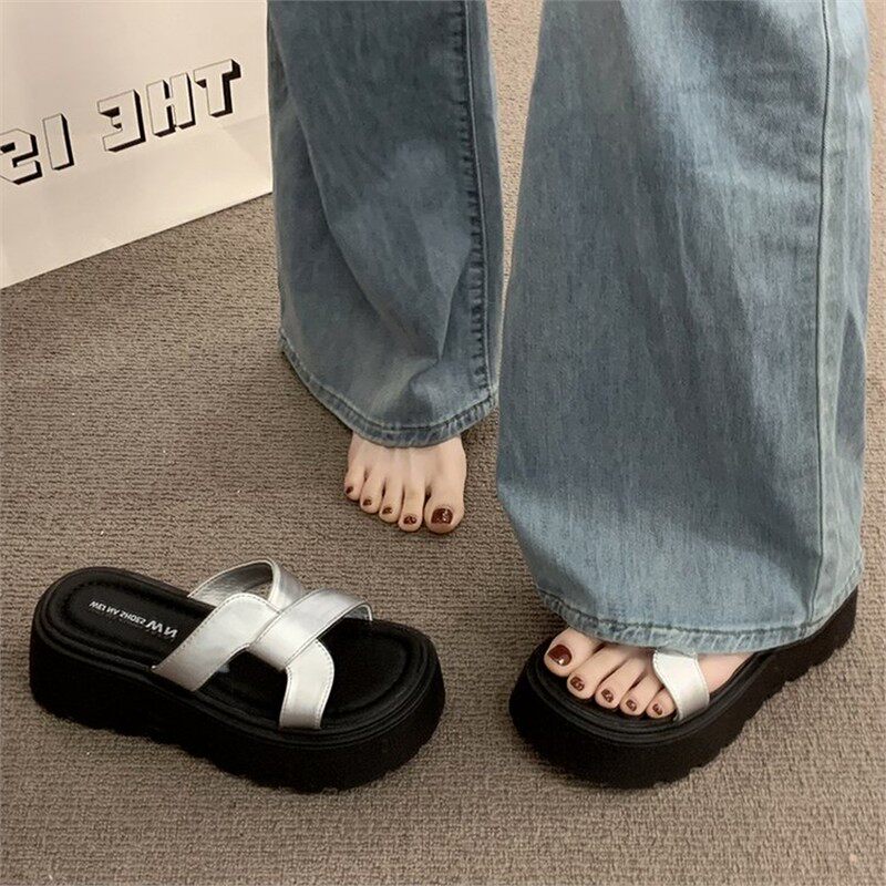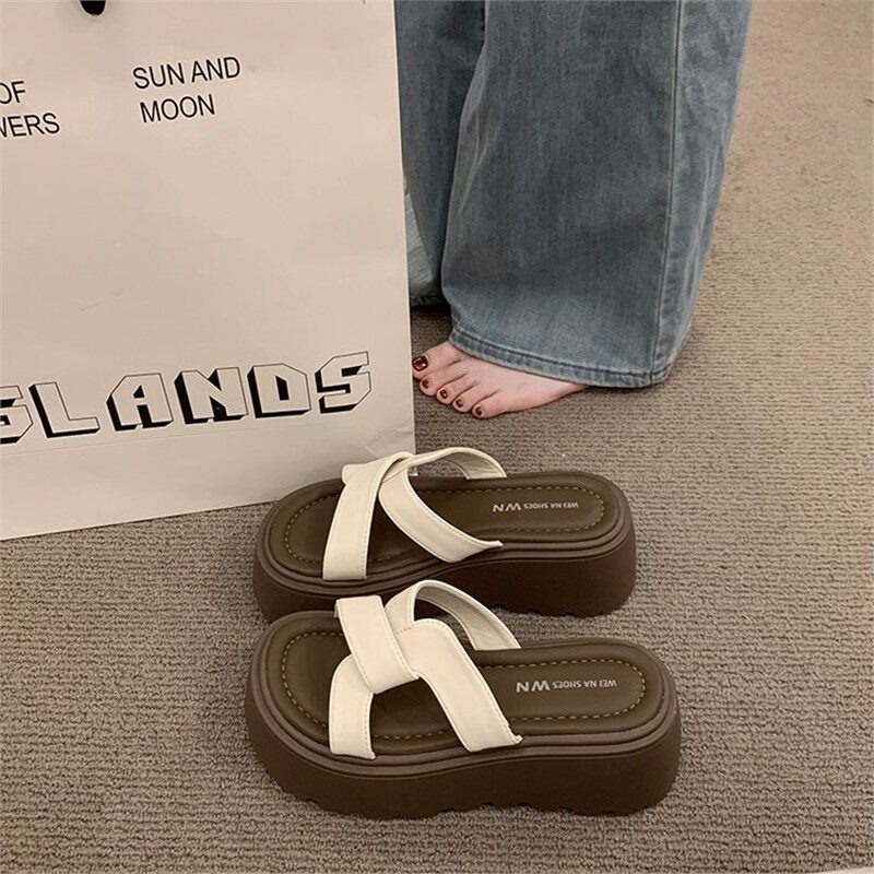 波西米亚海岛风 温柔ins厚底拖鞋 女夏季 外穿防滑沙滩一字拖 法式