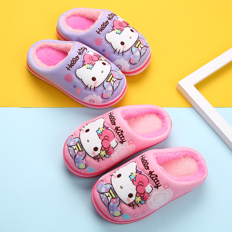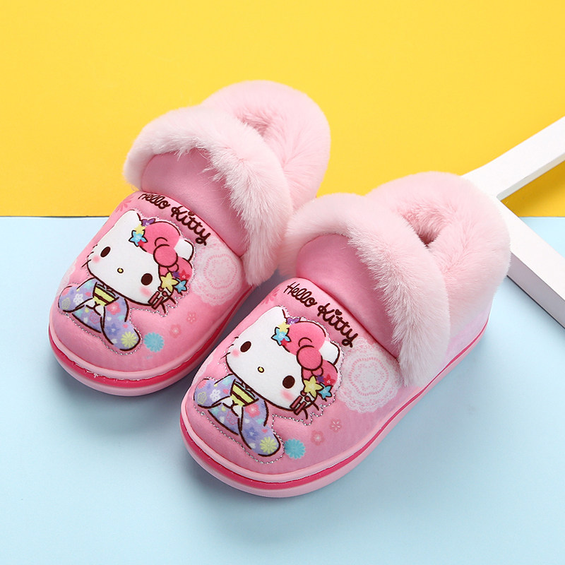冬居家防滑小孩保暖鞋 包跟中大童拖鞋 HelloKitty凯蒂猫女童棉拖鞋由