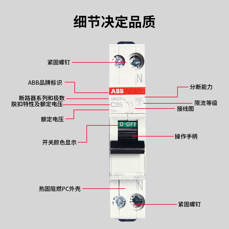 为您提供商品ABB空气开关DPN双进双出SN201L断路器10 N进口 40A一位双极单片1P的详细介绍,