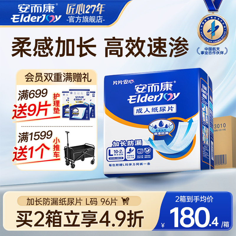 安而康加长成人纸尿片老年人用防漏纸尿布隔尿垫尿不湿护理96片由