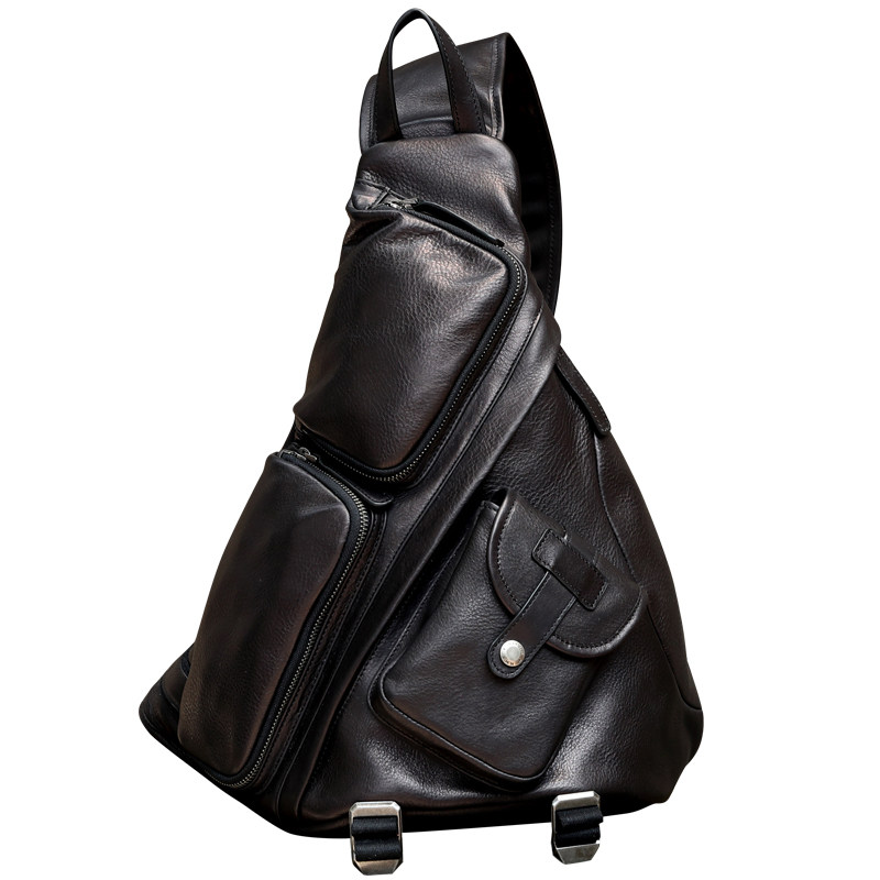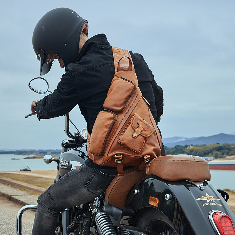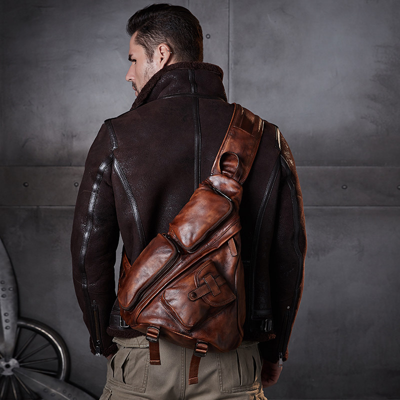 B6伞兵头层牛皮胸包真皮大容量单肩斜挎机车骑行男包 原创奢品