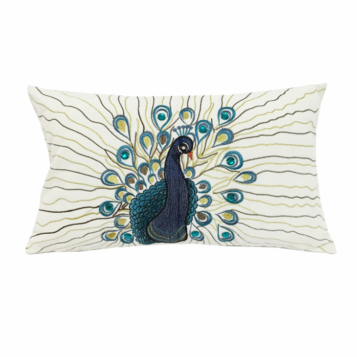 为您提供商品刺绣花孔雀开屏手缝亚克力钻 超柔绒方枕腰枕 田园靠垫抱枕套 美式的详细介绍,