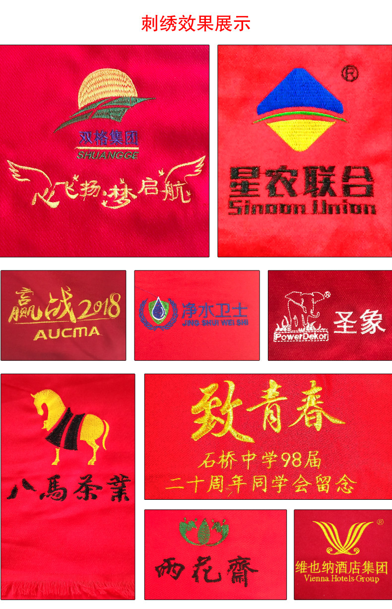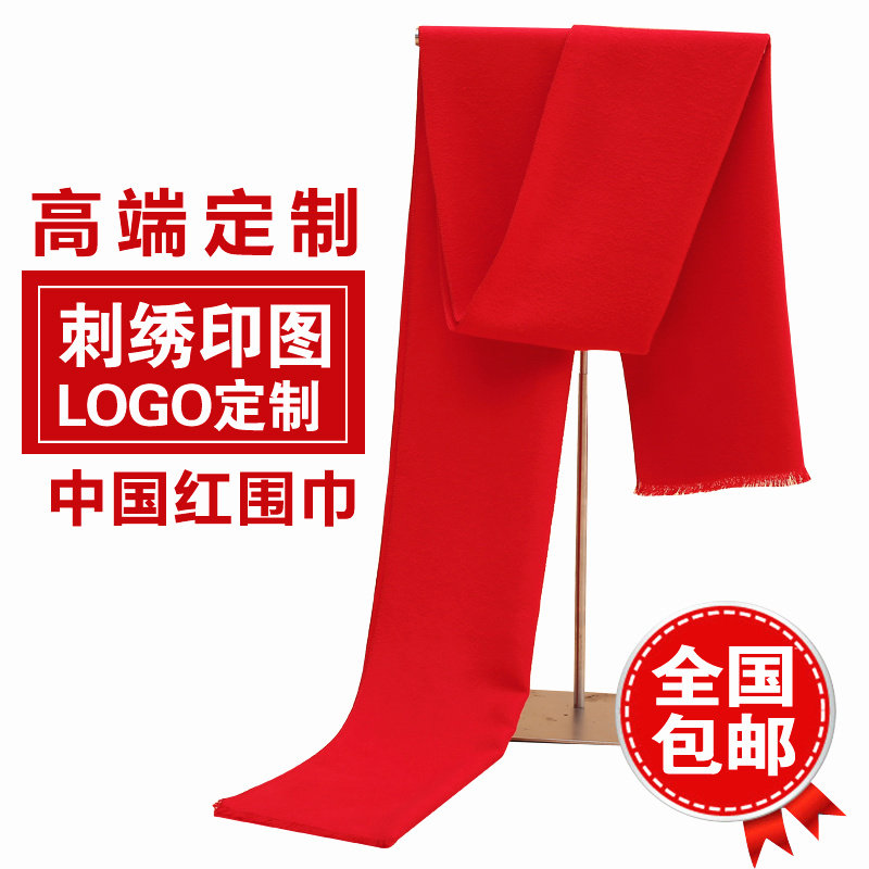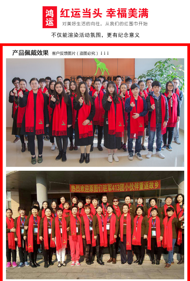 为您提供商品中国红围巾定制LOGO刺绣同学聚会年会活动大红色男女围脖印字的详细介绍,