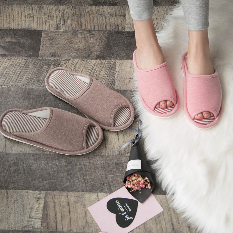 日式 家用四季 客拖大码 春秋室内软底防滑防水开口棉拖女男情侣拖鞋