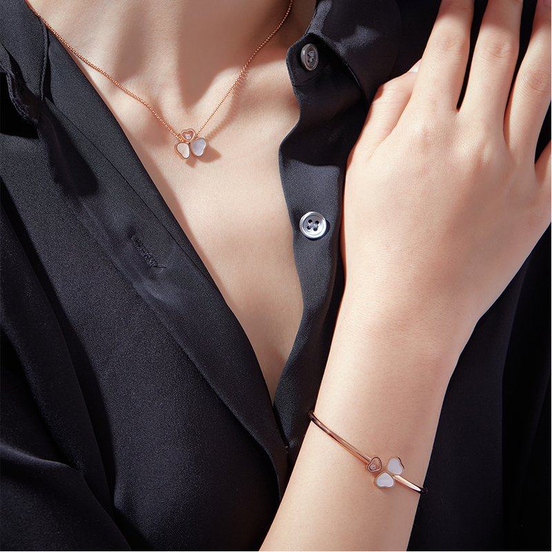 Chopard萧邦18K玫瑰金钻石三叶草蝴蝶项链吊坠生日礼物送女友