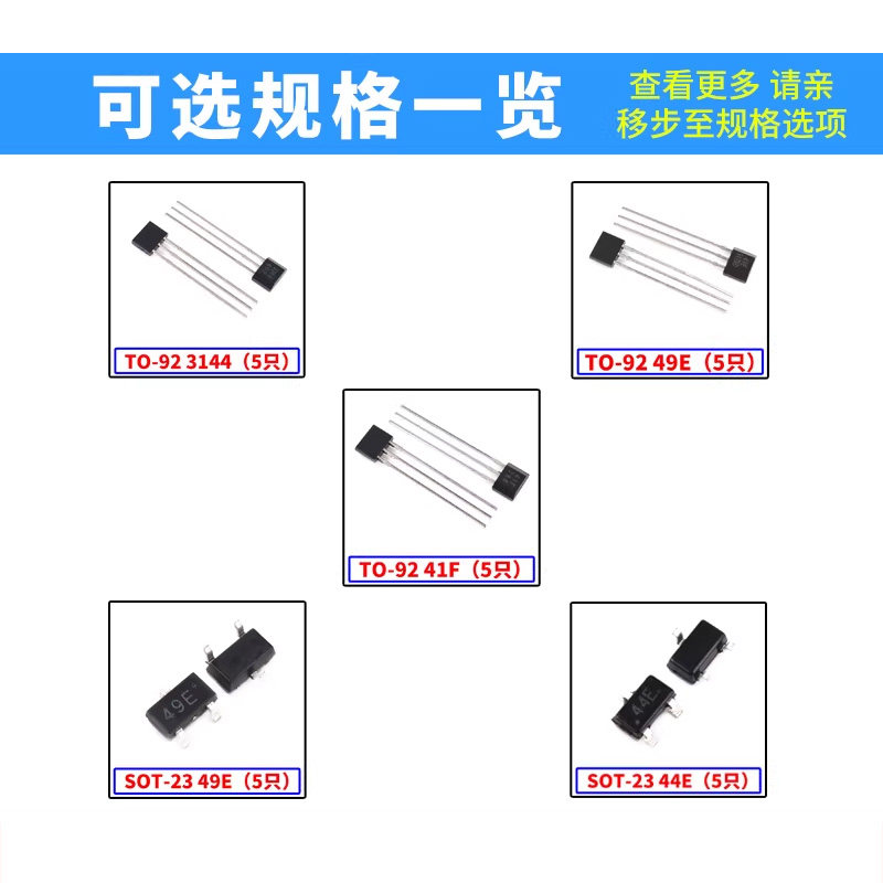 为您提供商品件TO 92直插SOT23 44E开关元 霍尔传感器S49E线性SH41F双极性A3144的详细介绍,