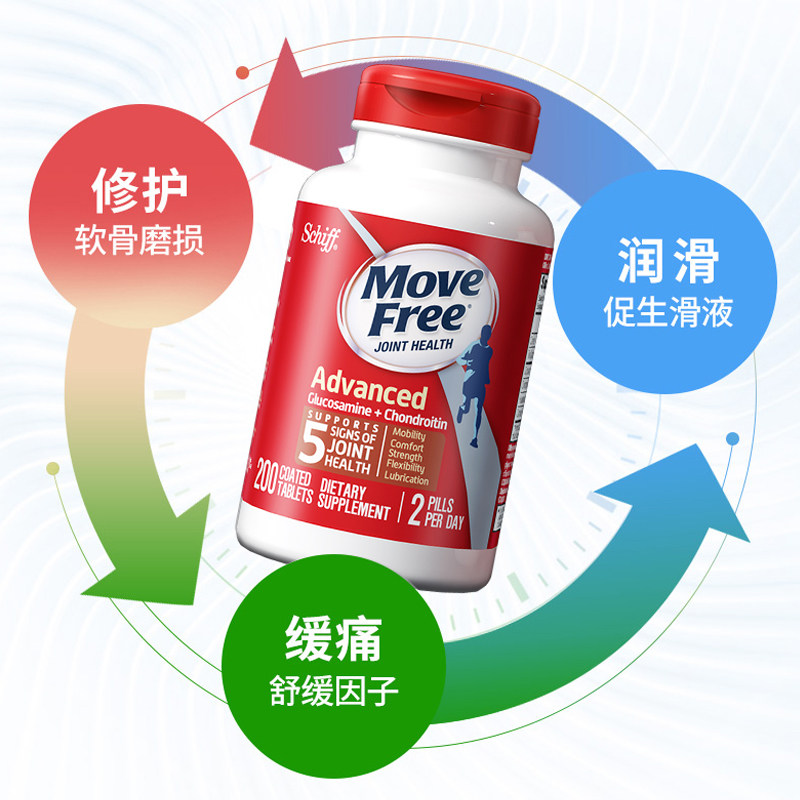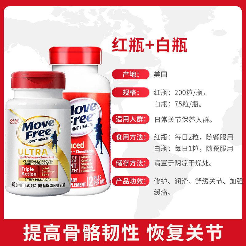 Free红瓶维骨力氨糖软骨素200粒 骨胶原白瓶75粒 Move 美国Schiff由