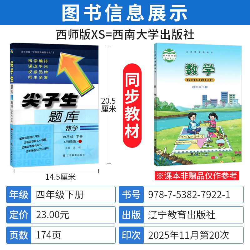 为您提供商品小学生数学4年级下册教材书课本同步辅导资料书练习题册单元 检测期中期末综合能力测试卷子 尖子生题库四年级下册数学XS版 西师版的详细介绍,