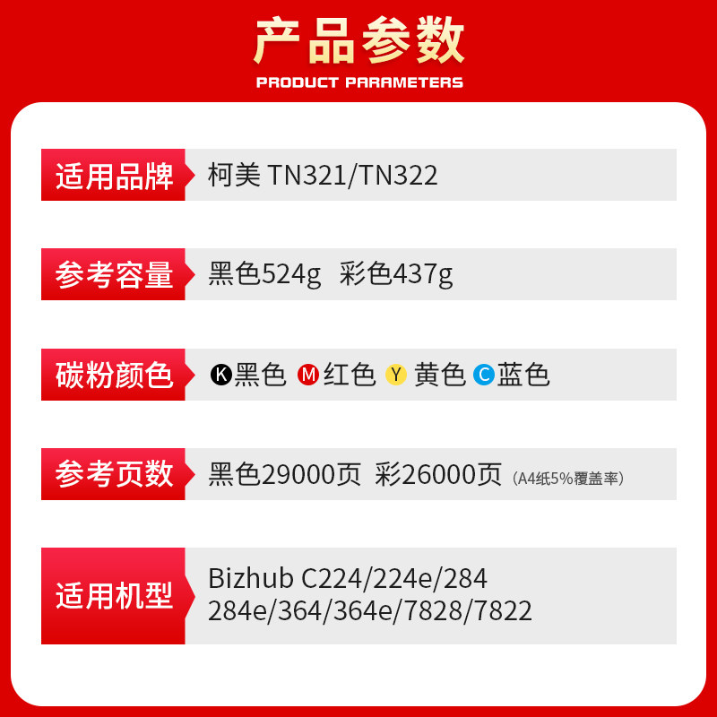 为您提供商品C7822 适用柯尼卡美能达TN321粉盒C224 C284 C364打印机墨粉筒 TN322彩色复印机粉仓 C7828碳粉的详细介绍,