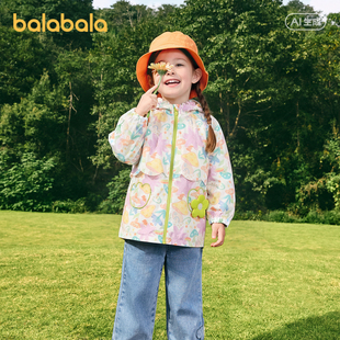 儿童外套女童2026新款 商场同款 巴拉巴拉童装 连帽防护上衣 春装