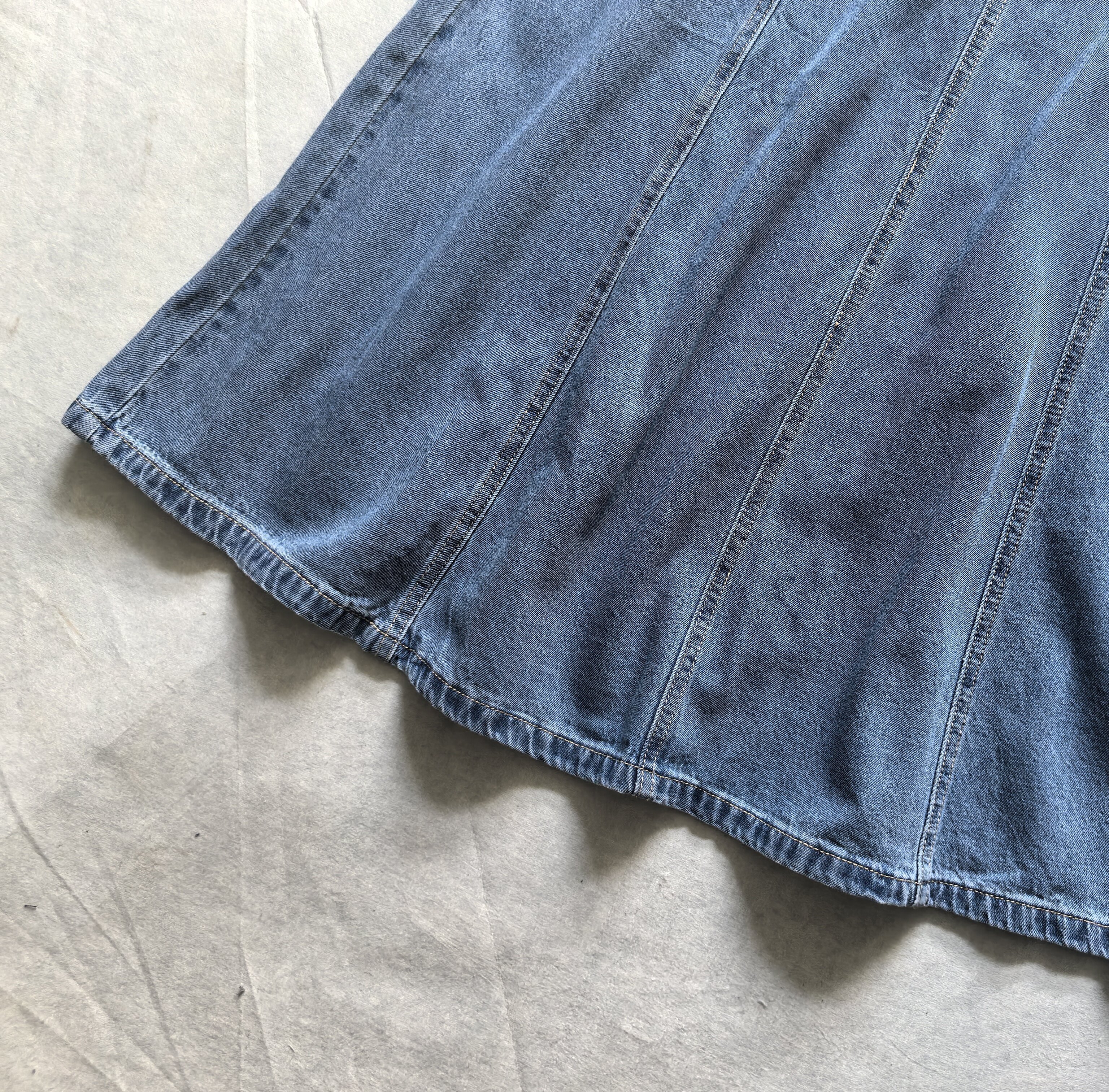 半身裙蓬蓬裙A字裙 外贸原单出口欧美显瘦拼接百搭复古牛仔中长款