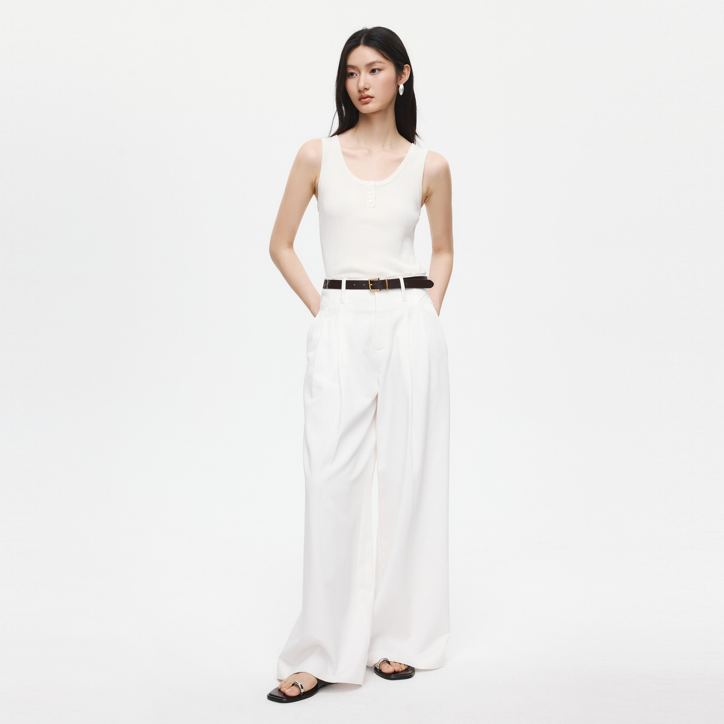 外穿内搭打底遮副乳无袖 百搭吊带 修身 螺纹方领吊带背心女白色大码