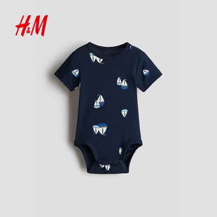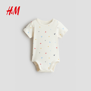 新款 印花棉质哈衣连体衣1316345 男婴女婴连身衣2026春季 HM童装