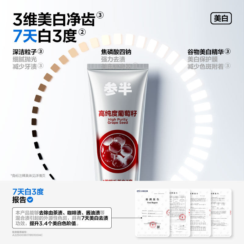 为您提供商品店120g 参半葡萄籽牙膏男女美白长效清新口气亮白牙齿清洁官方正品的详细介绍,