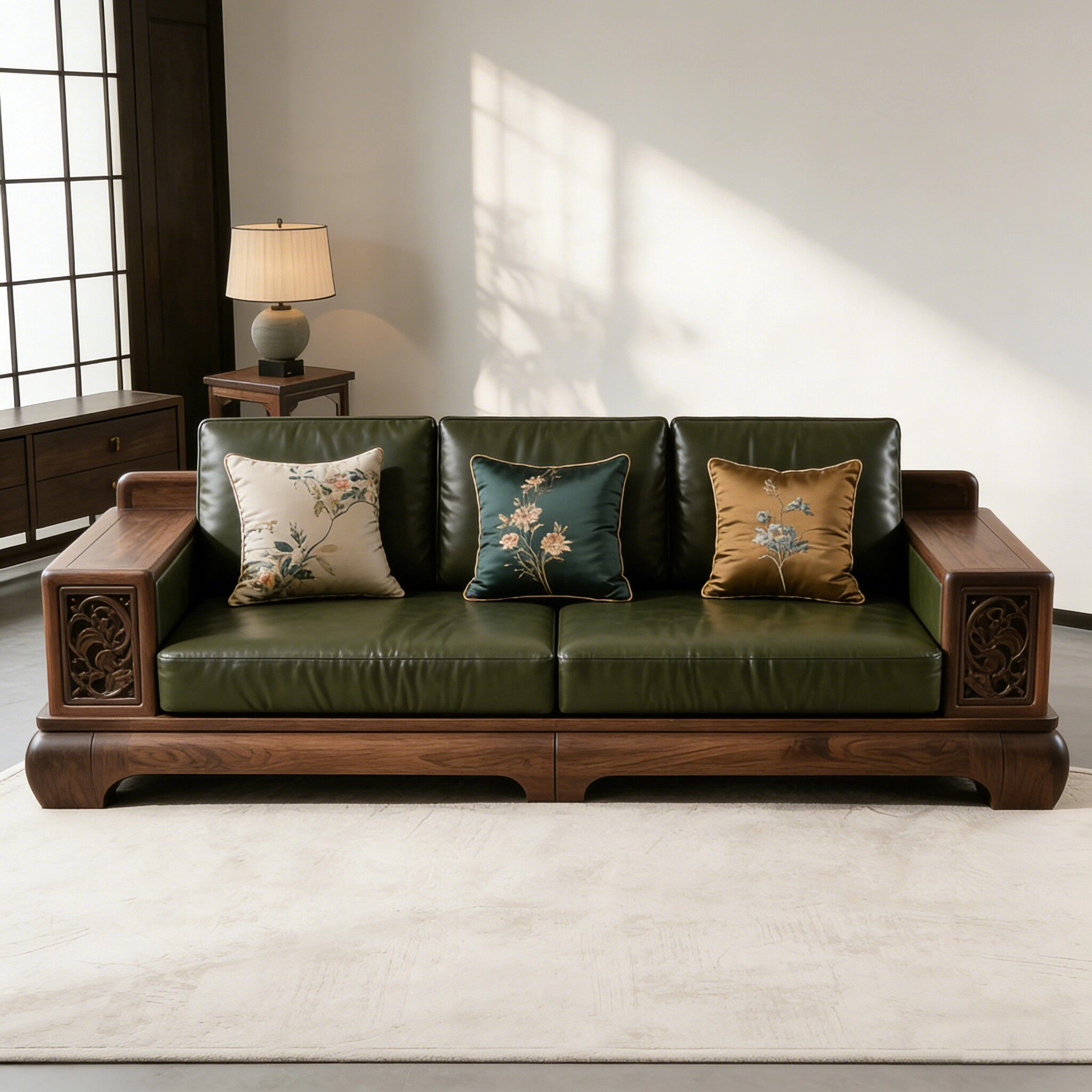 胡桃木国风雕花实木沙发现代简约家用冬夏两用可储物家具 新中式