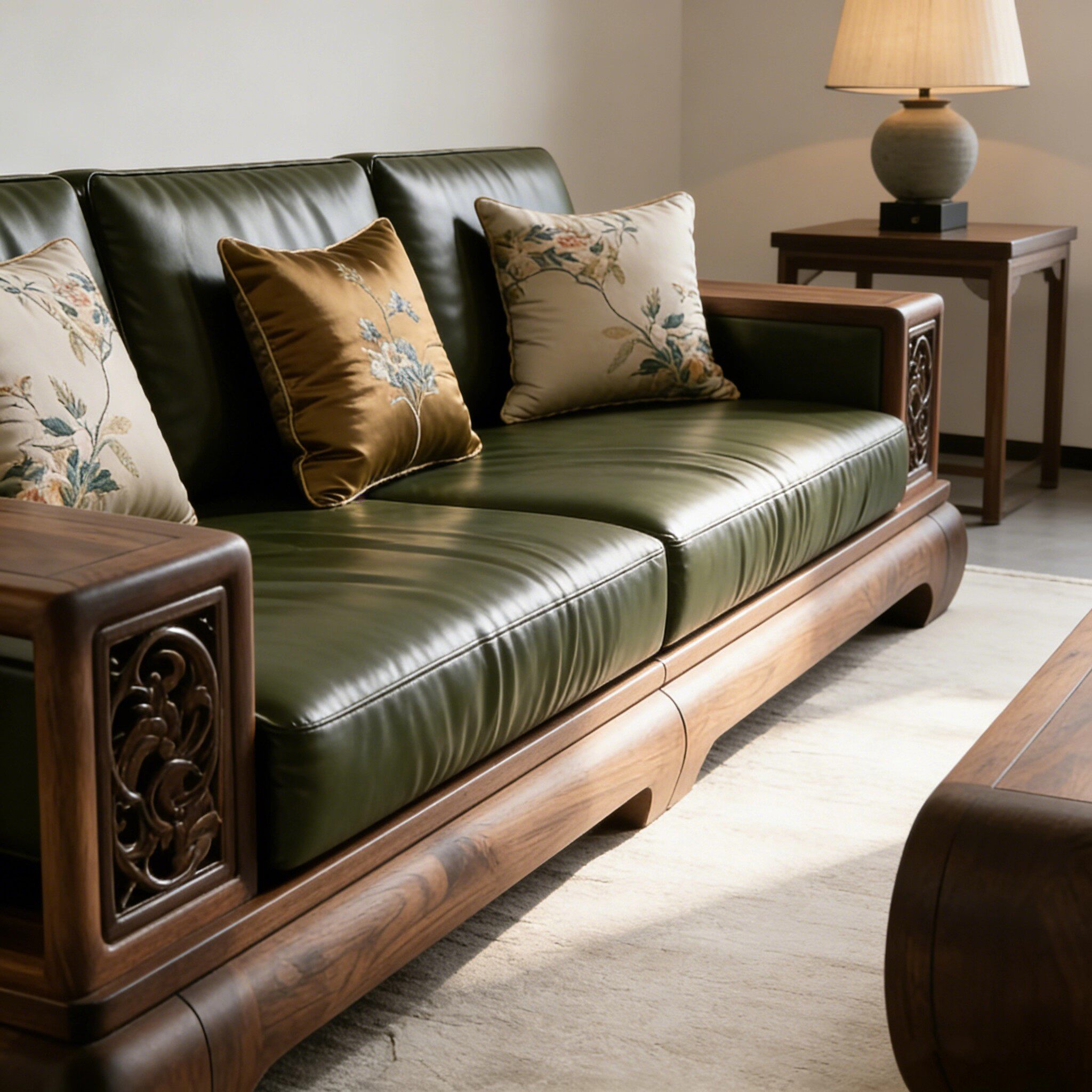 宋式 沙发轻奢高级全套家具 美学实木沙发组合客厅直排沙发新中式
