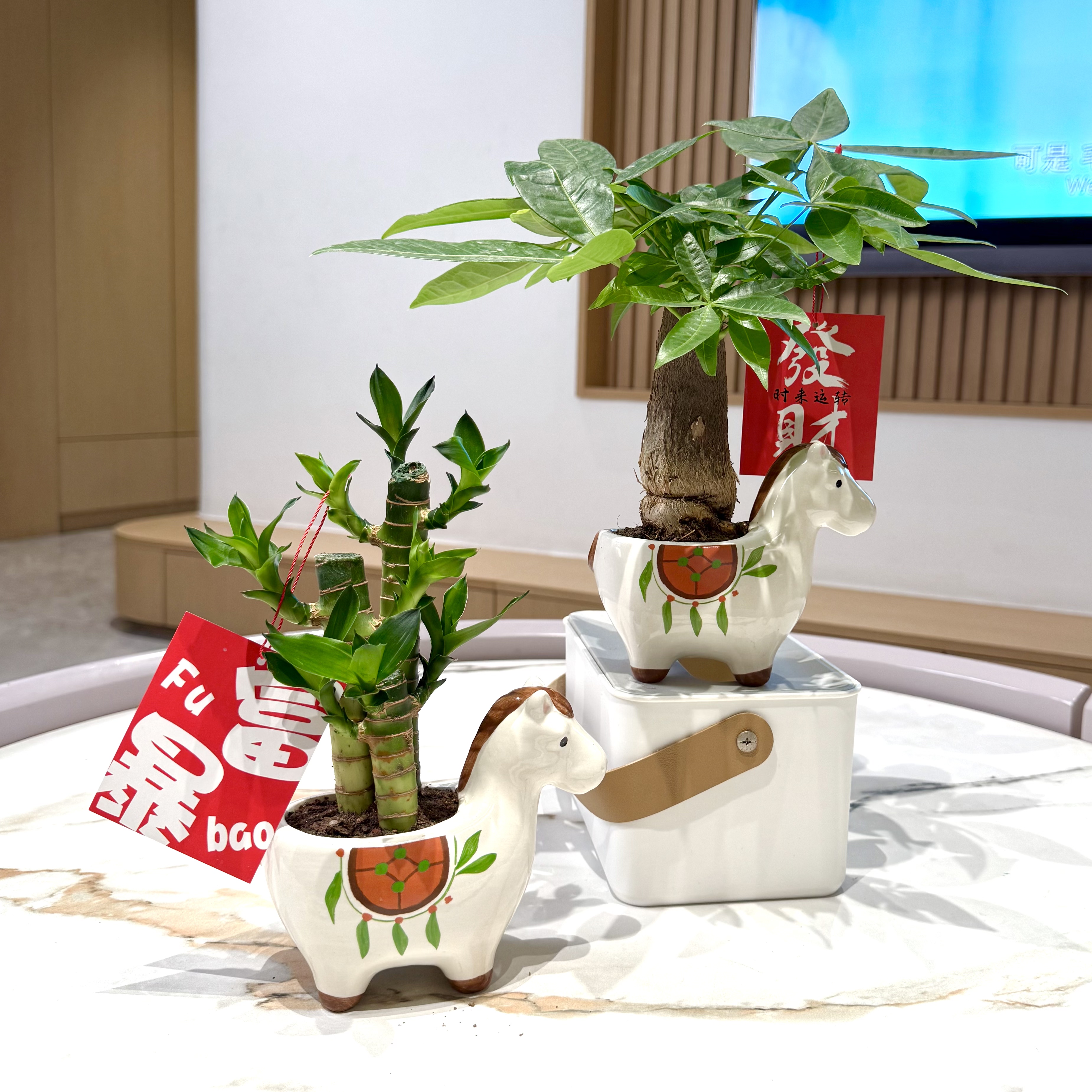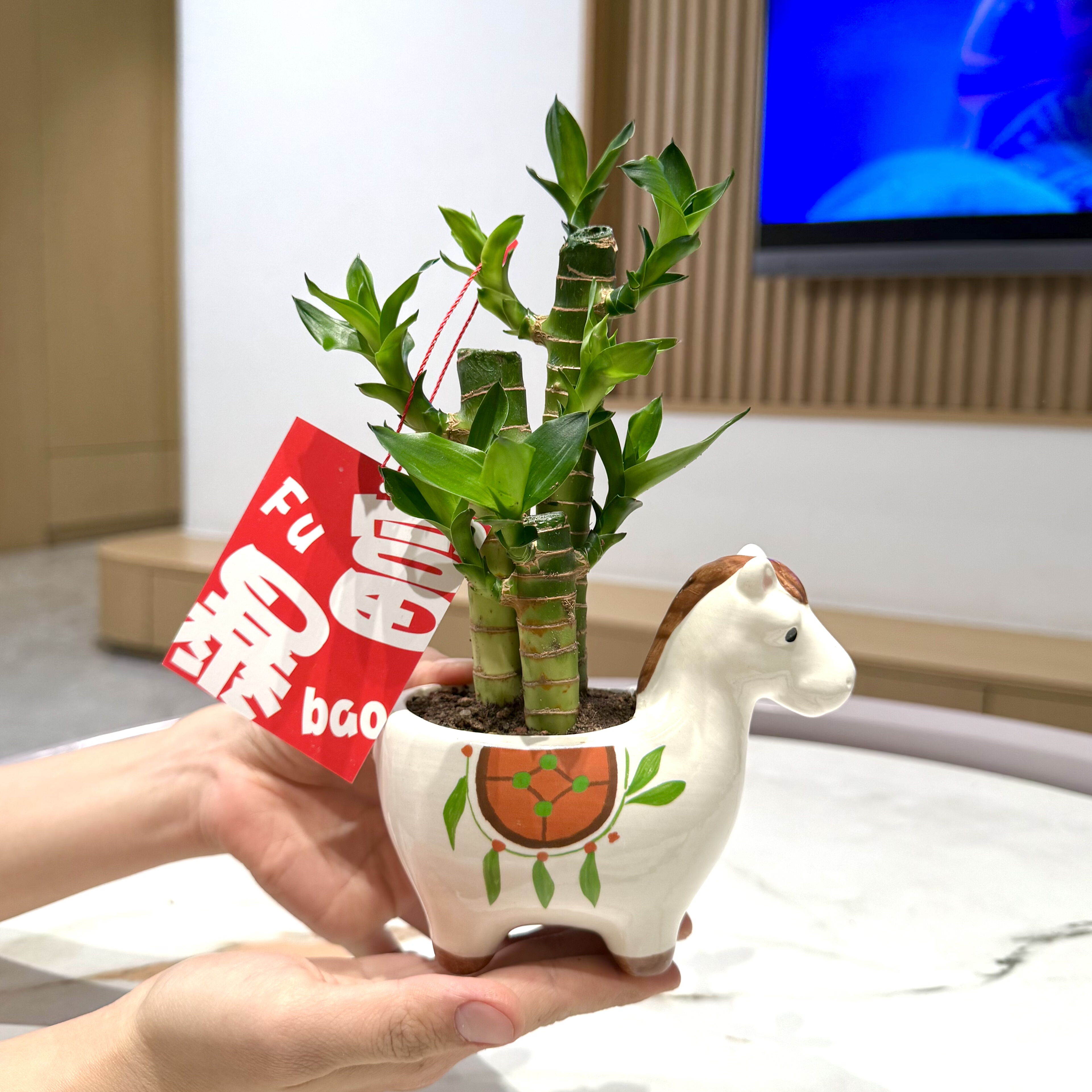 马上发财树富贵竹马年盆栽盆景室内客厅办公室桌面观叶趣味花卉绿