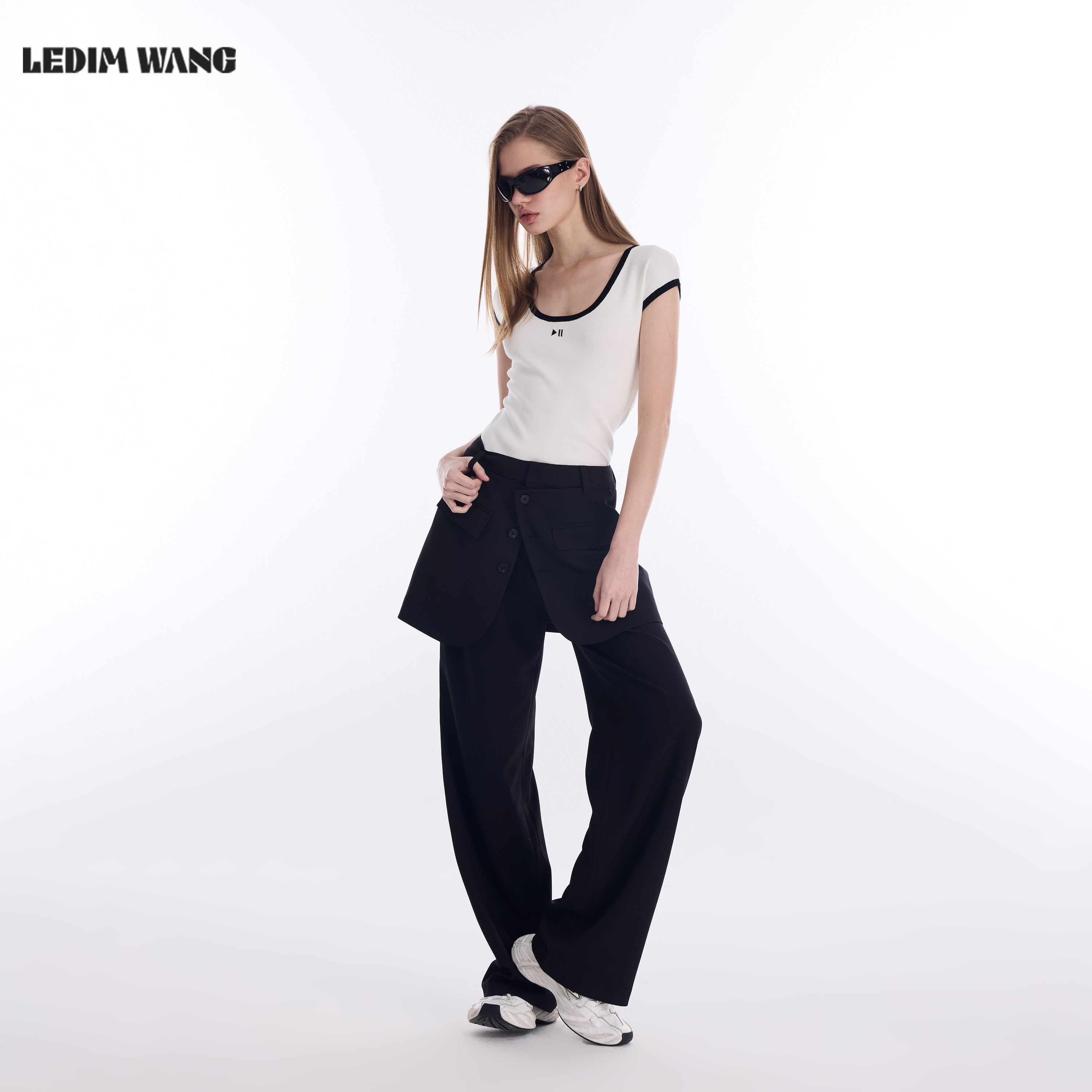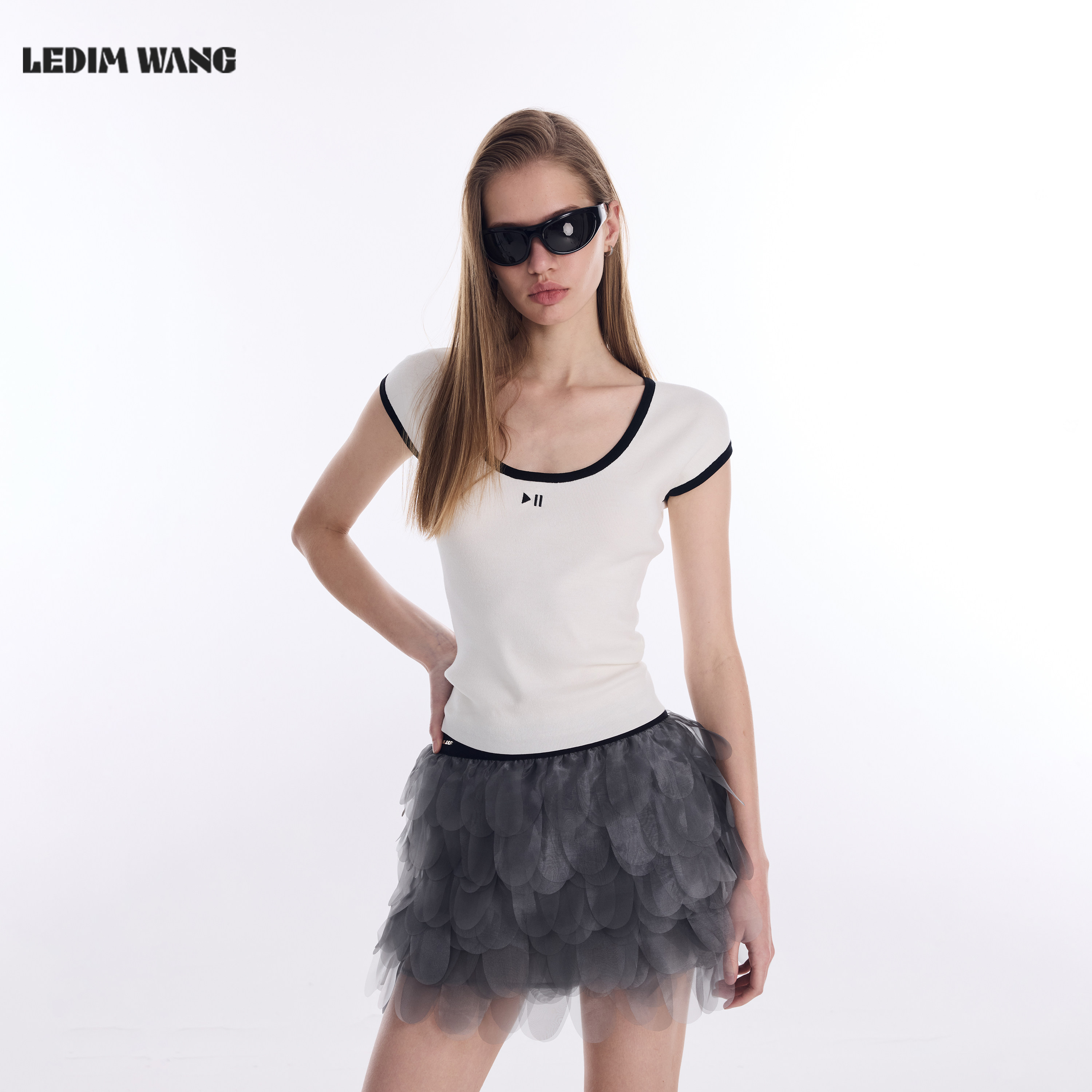 T恤女2026春新款 白色宽松亲肤通勤上衣 WANG撞色刺绣短袖 LEDIM由