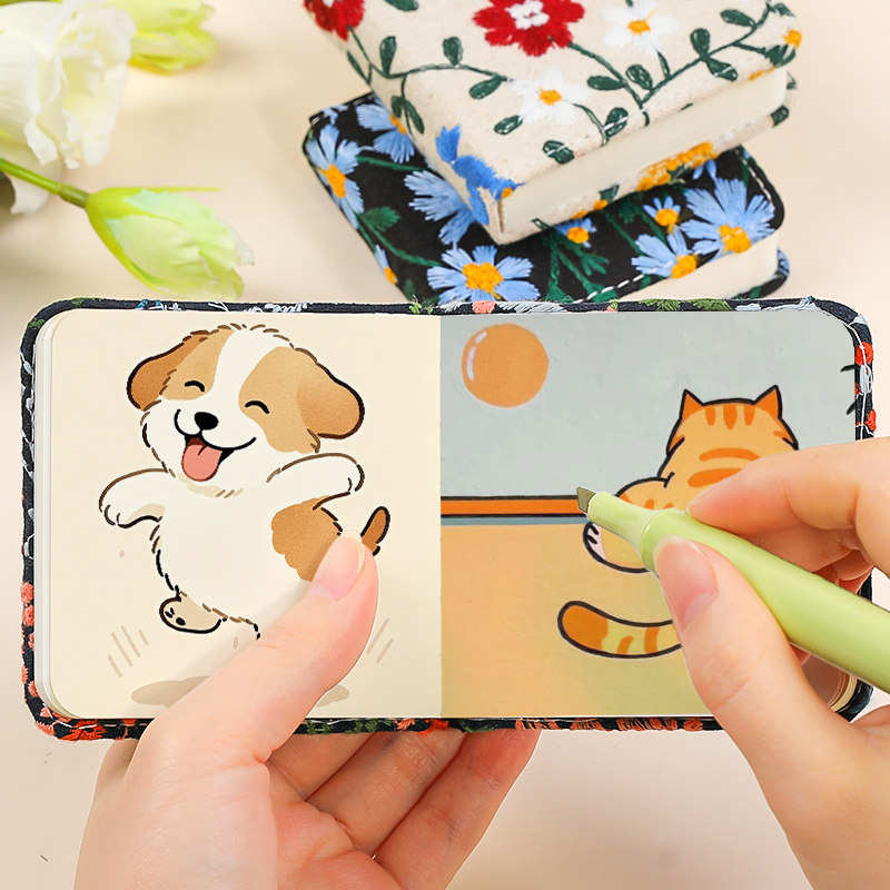 为您提供商品学生素描水彩本摸鱼豆豆本 高颜值布艺绘画本翻翻乐小本子丙烯马克笔专用小方本随身便携口袋画画本2026年新款的详细介绍,