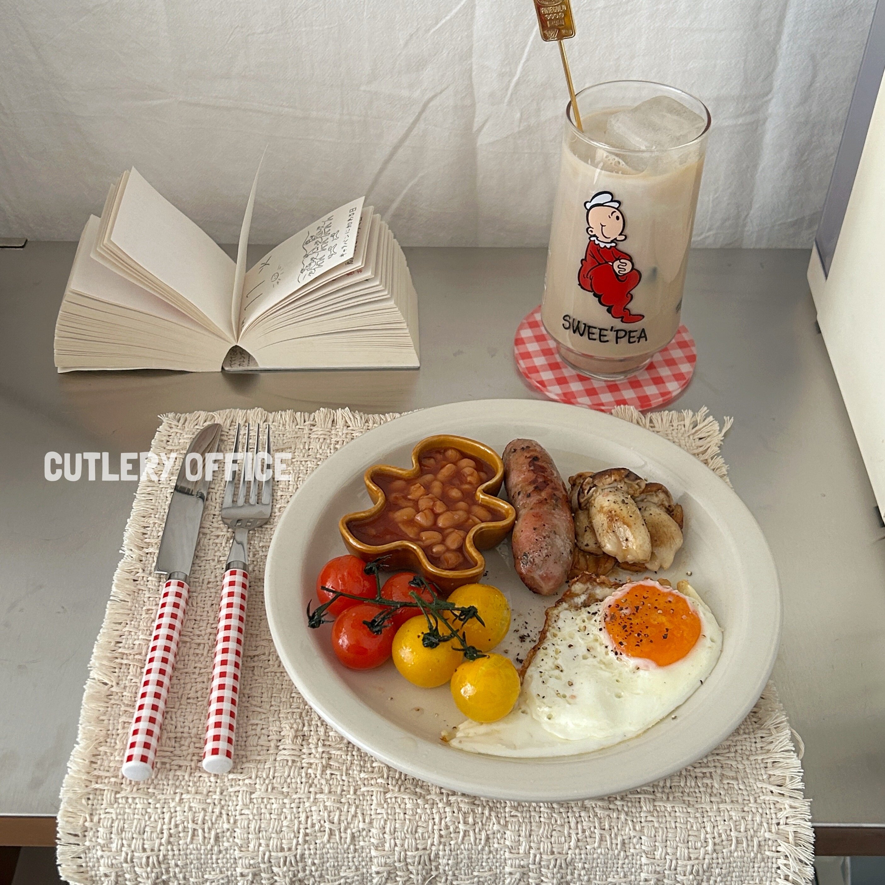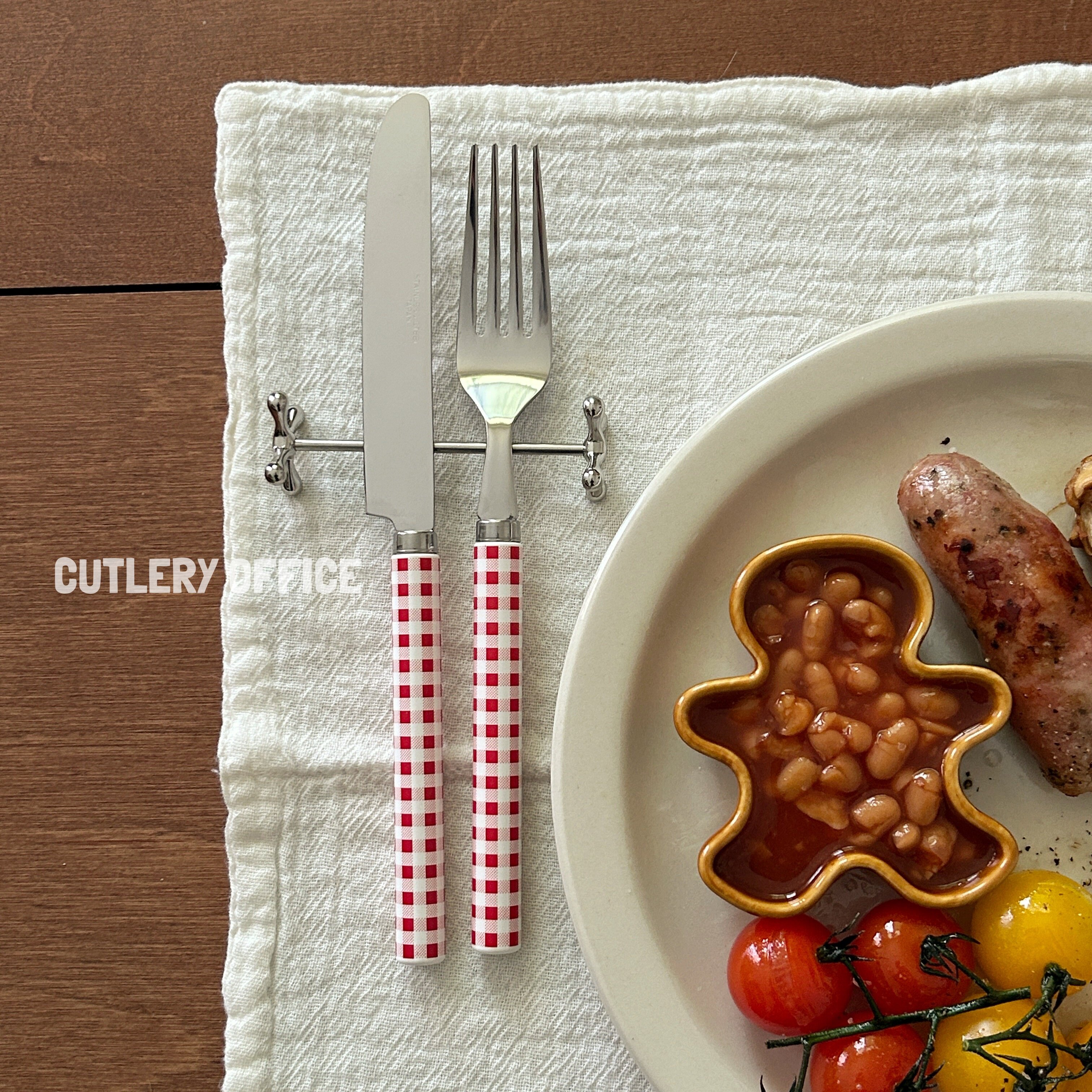 经典 红色格纹圣诞新年氛围不锈钢进口餐具刀叉 日本制 Cutlery由