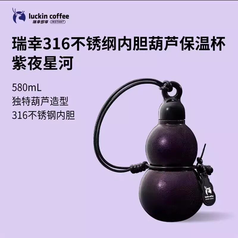 瑞幸葫芦杯挂绳316不锈钢保温杯正品 保冷杯便携杯高颜值简约风格