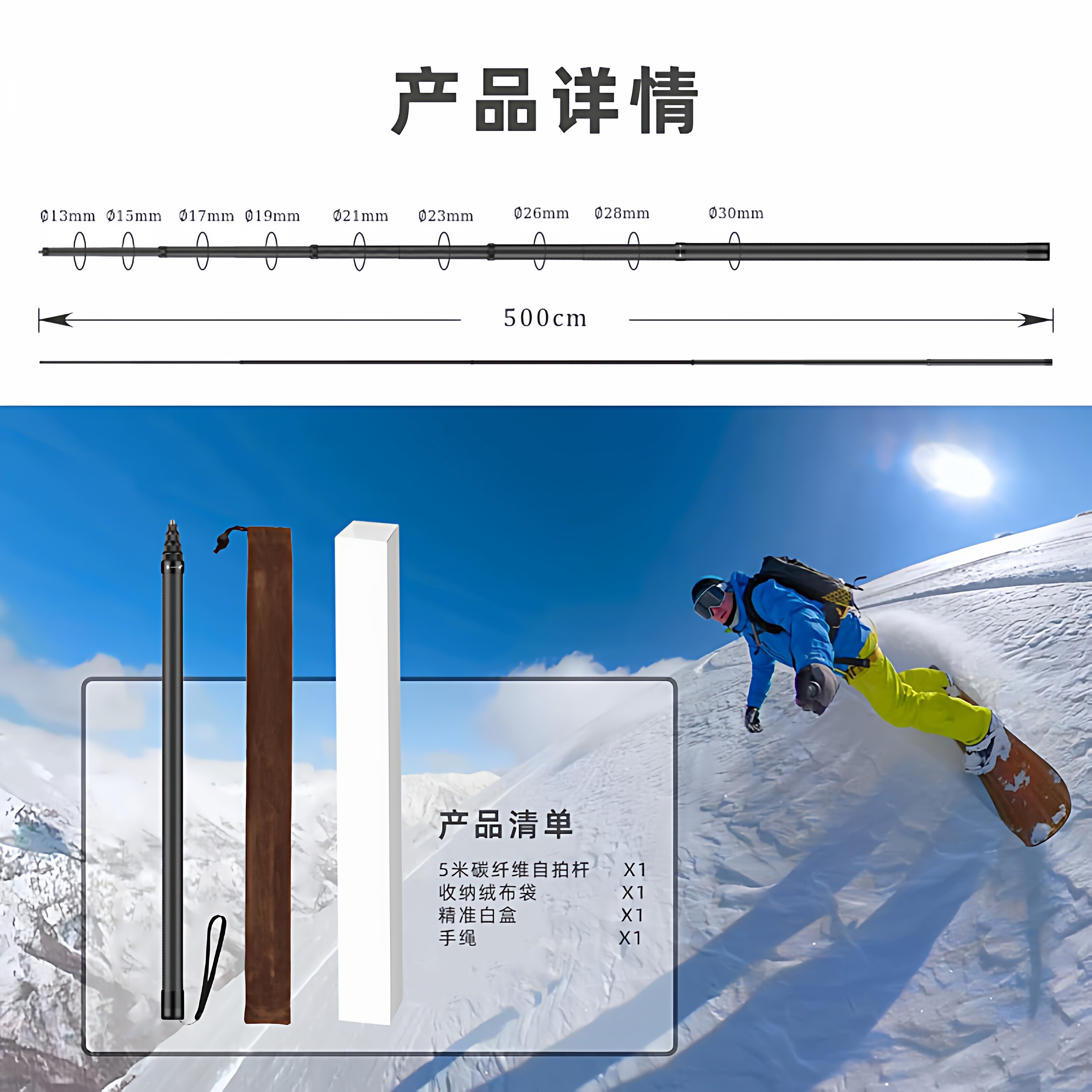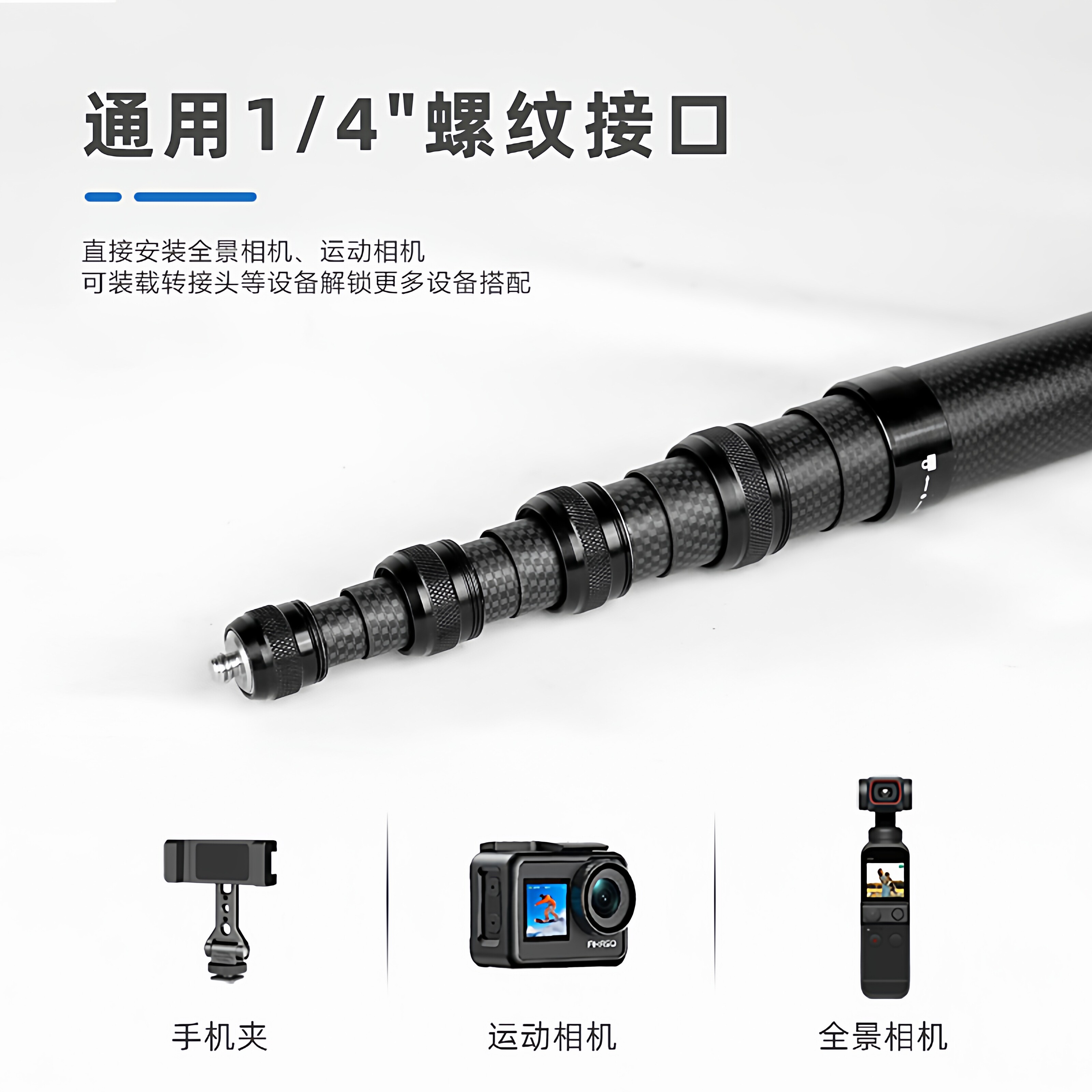 为您提供商品超长5米碳纤维延长杆适用insta360X2X3X4隐形自拍运动相机加长杆的详细介绍,