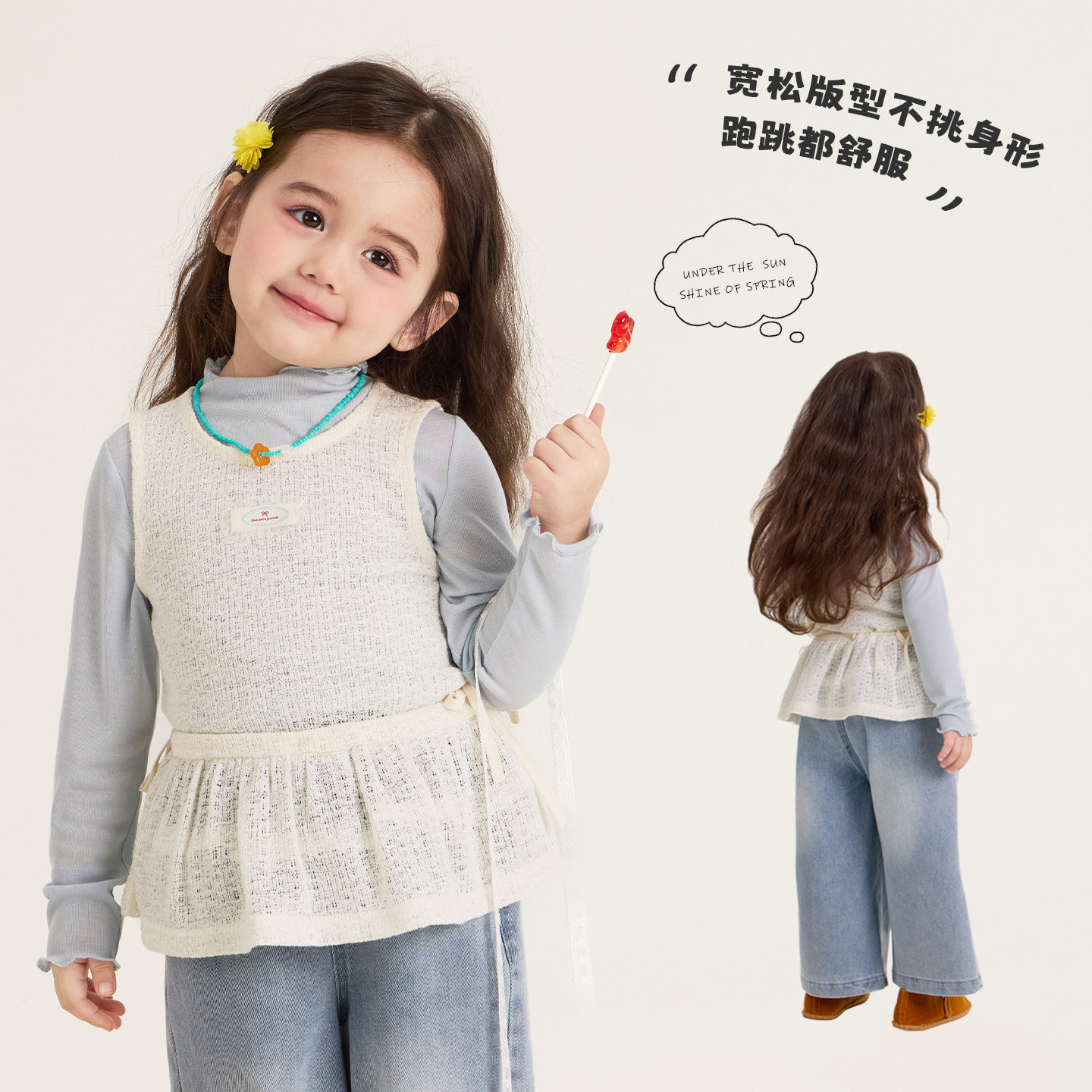 洋气儿童春装 大小卷女童套装 春秋2026新款 韩版 背心裙两件套 打底衫由