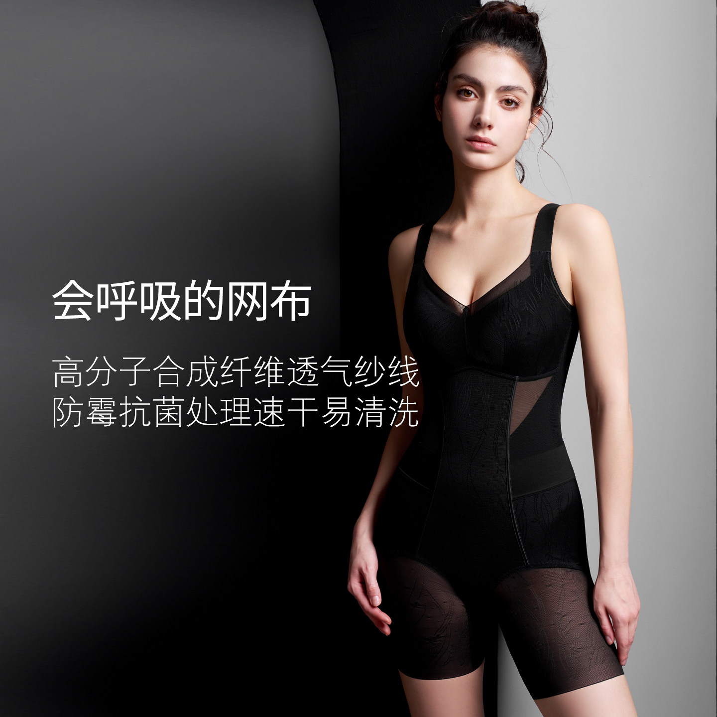 曲线主义黑巧凉感塑身衣美体收腹提臀显瘦连体紧身衣 宋茜同款