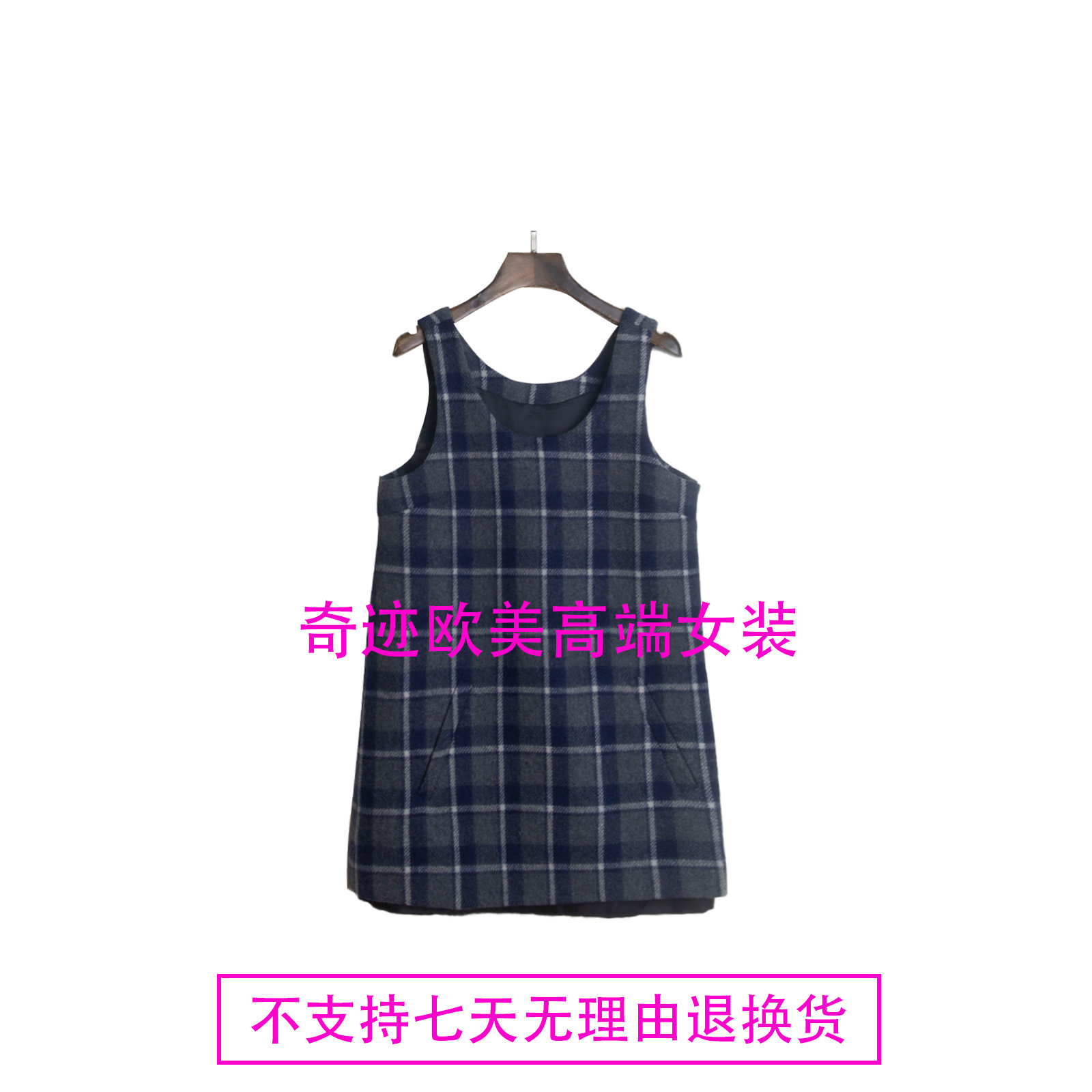 A摆无袖 不退不换 连衣裙 格子羊毛薄毛呢 26新款 原509 特惠289