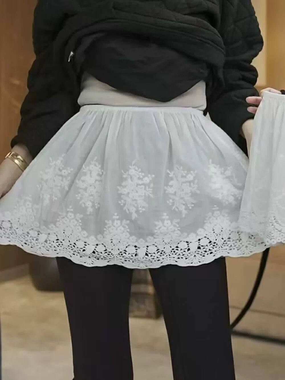 a字半身裙蓬蓬镂空裙 白色蕾丝蛋糕裙女春秋夏高腰显瘦宽松中长款