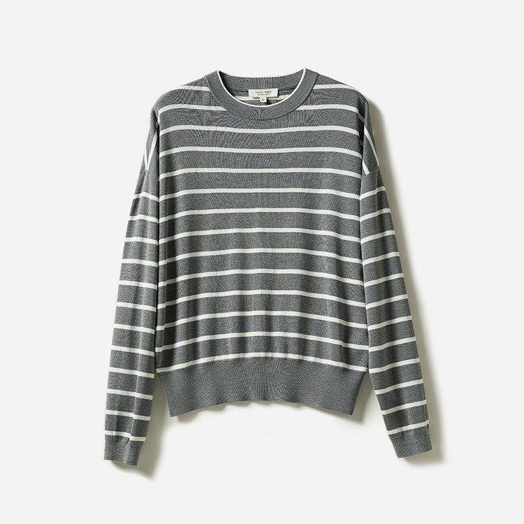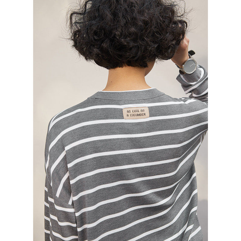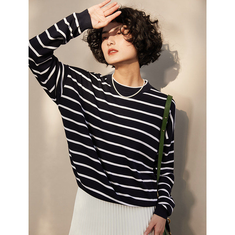 茉莉雅集零负担优雅可机洗全真丝18针海魂条纹针织套衫 WZT05337