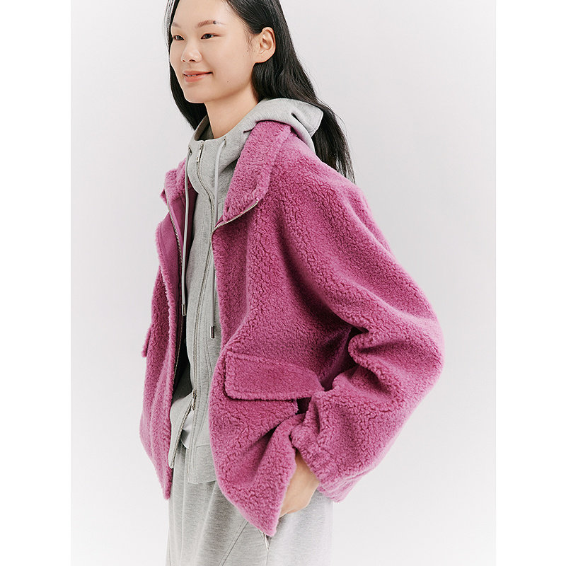 绵羊毛多巴胺颗粒绒短外套女减龄显白羊羔毛粉色 十二篮26春新款由