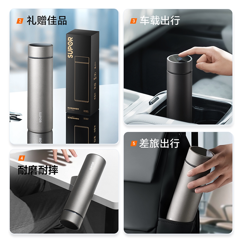 为您提供商品苏泊尔智能显温保温杯男款 直身316L不锈钢车载商务茶杯耐摔礼盒装的详细介绍,
