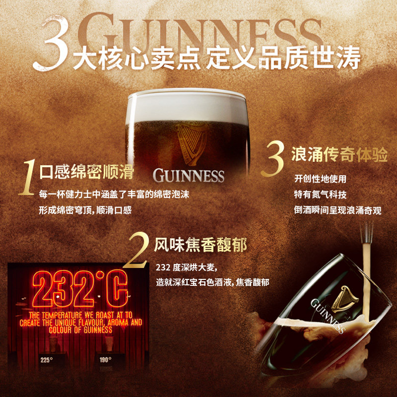健力士司陶特黑啤9.9°P 8听 精酿世涛啤酒440ml由