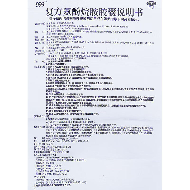 999复方氨酚烷胺胶囊12粒治疗流感药感冒发热头痛鼻塞流涕咽痛LY由