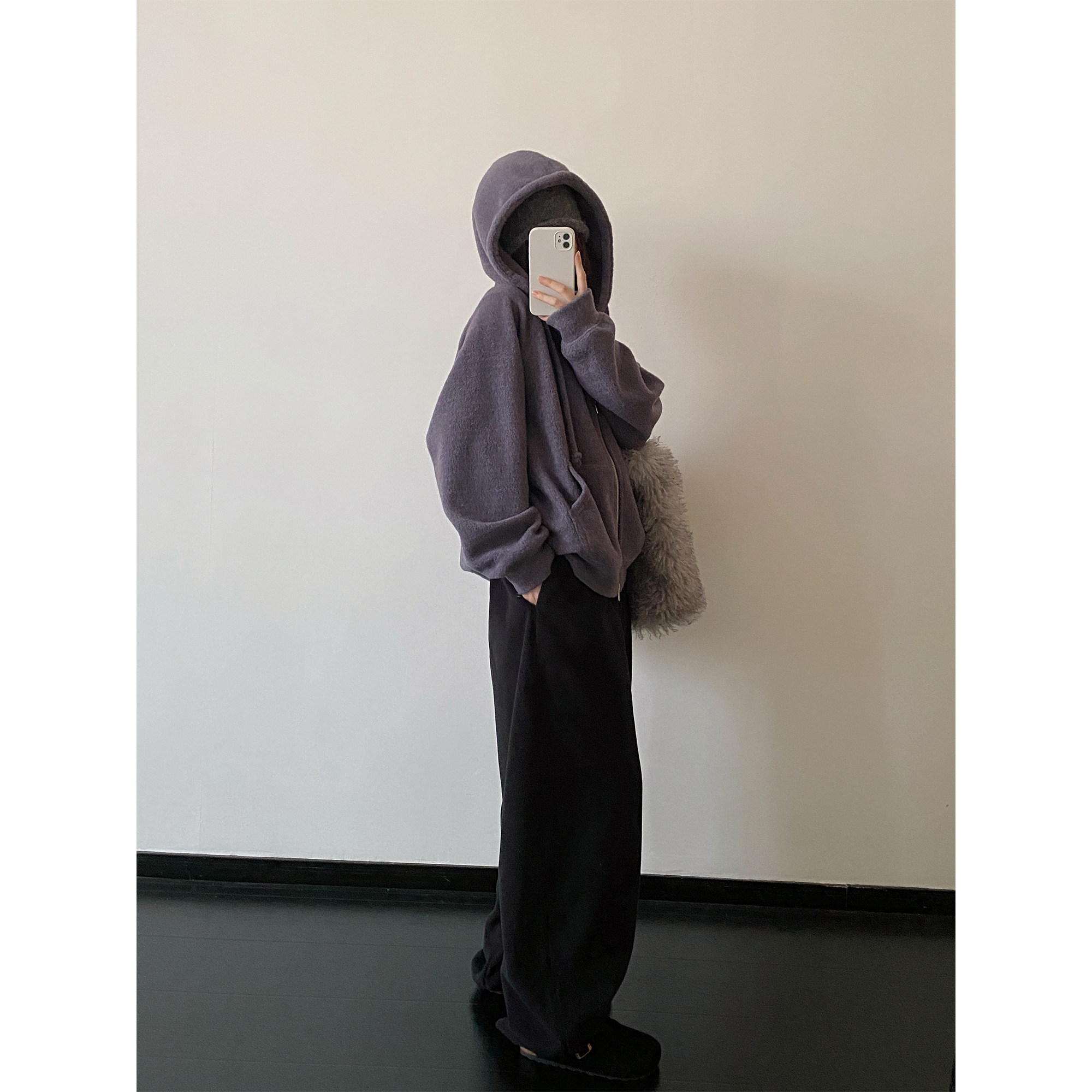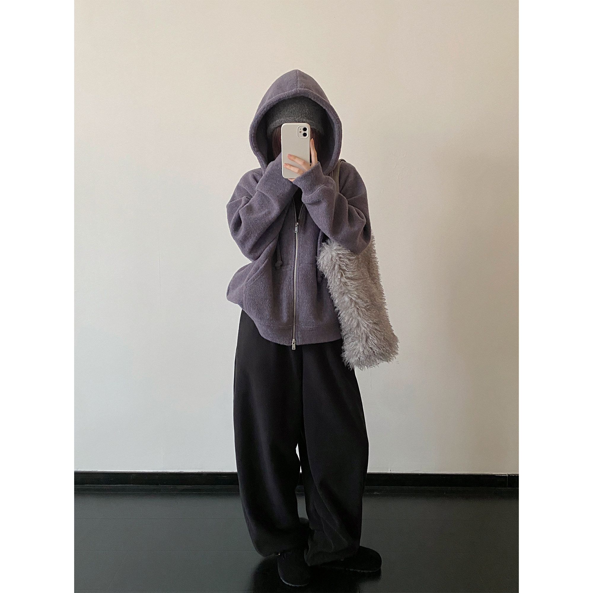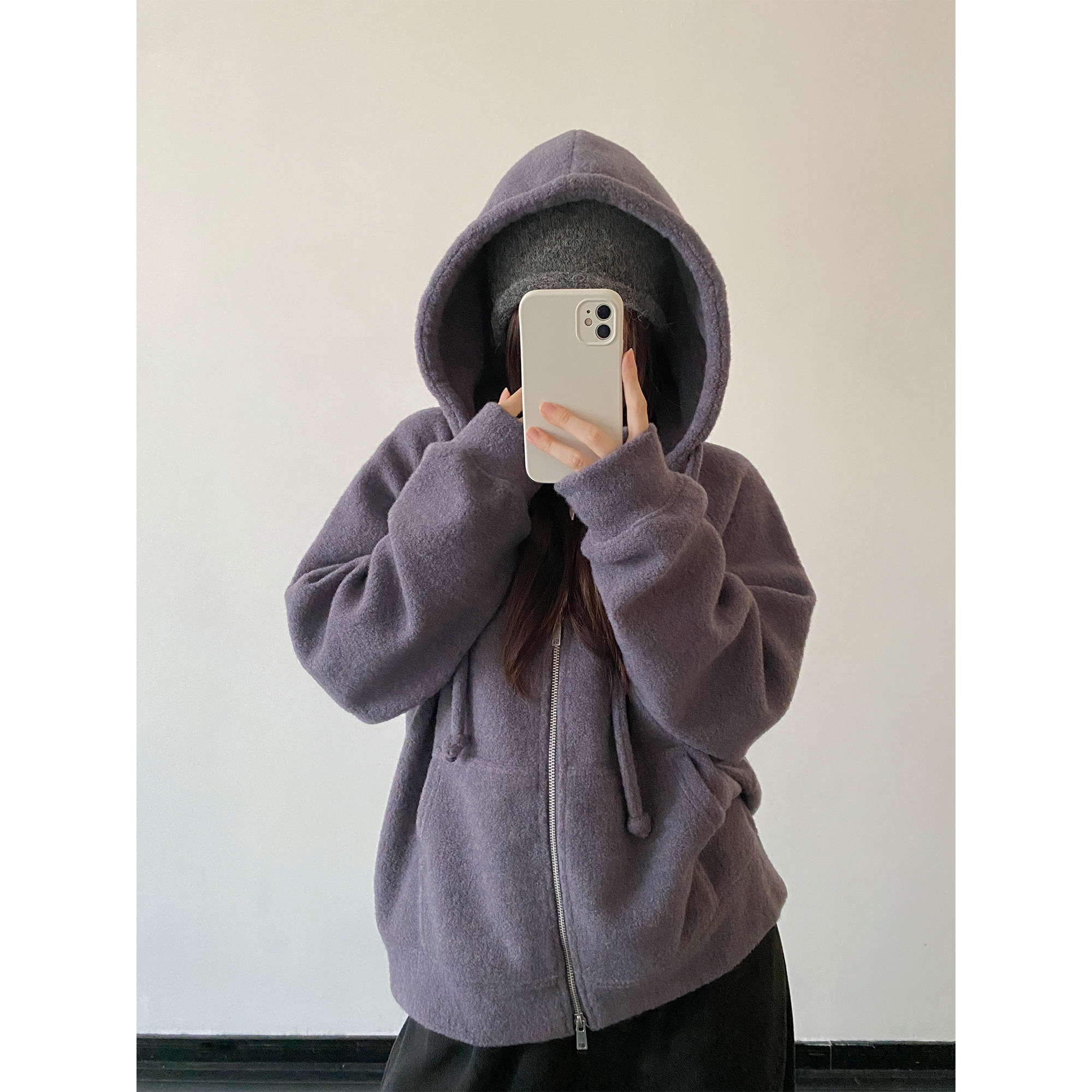 600g高克重杂纱连帽卫衣冬季 慵懒上衣外套 香芋暖暖 sun柚