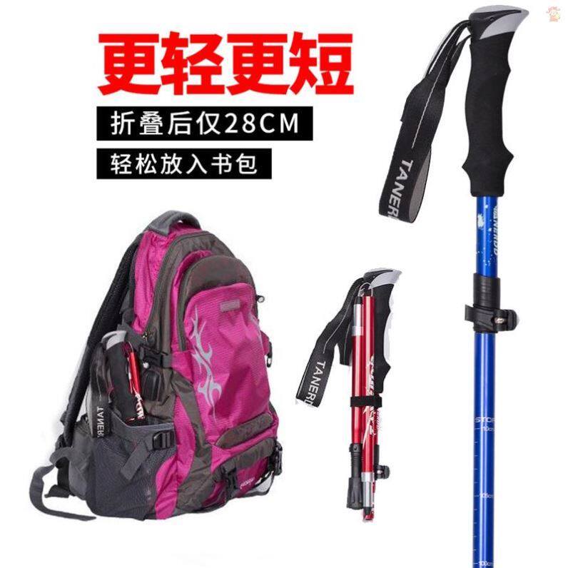 备手杖铝合金超轻折叠伸缩拐杖专业爬山棍 儿童登山杖户外徒步装
